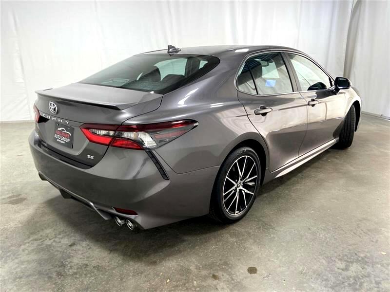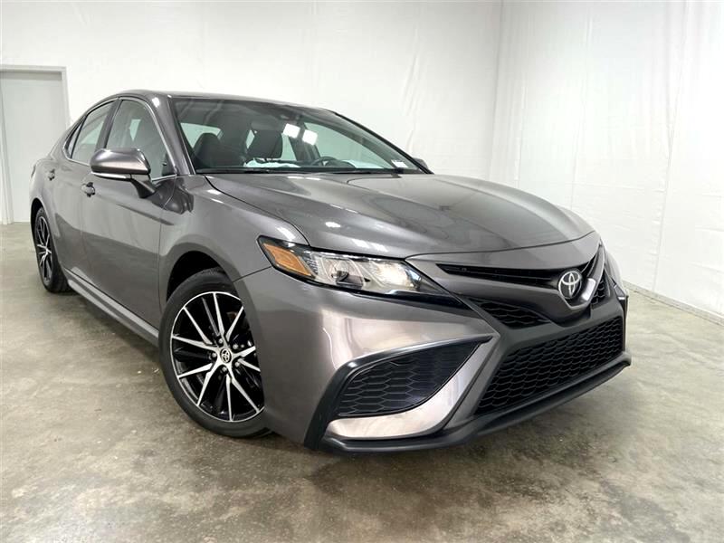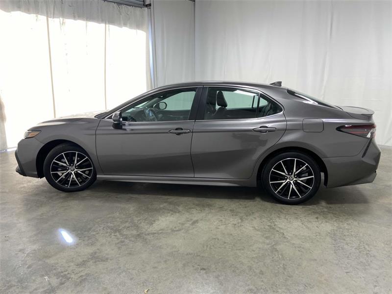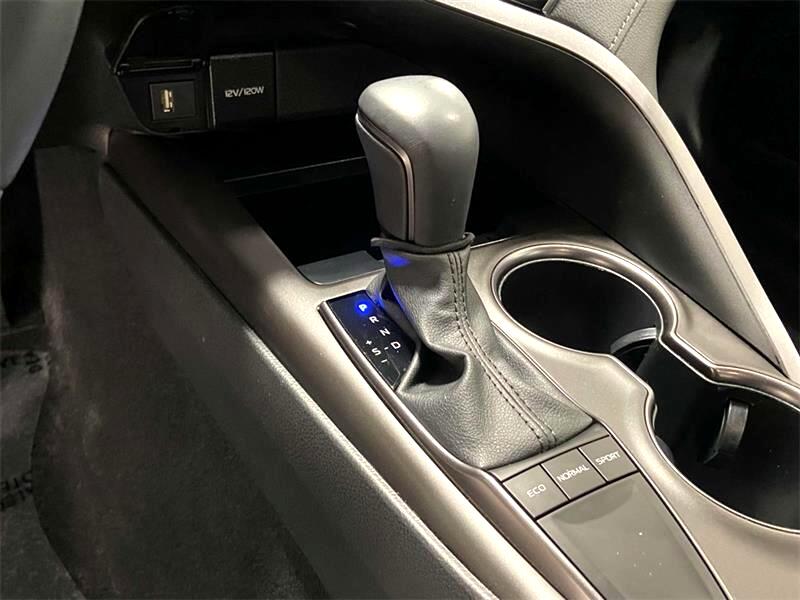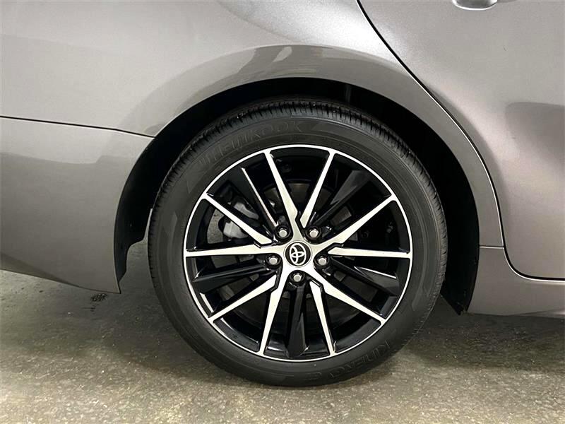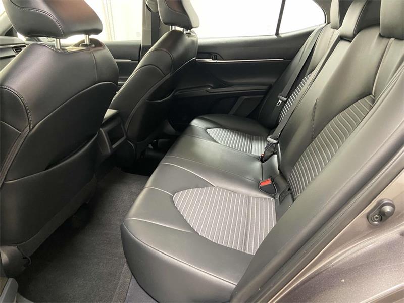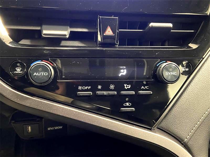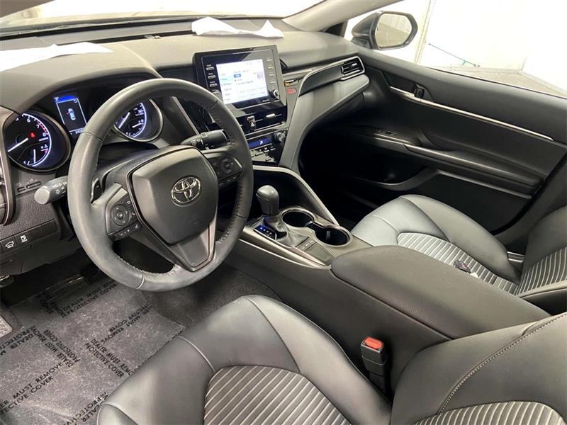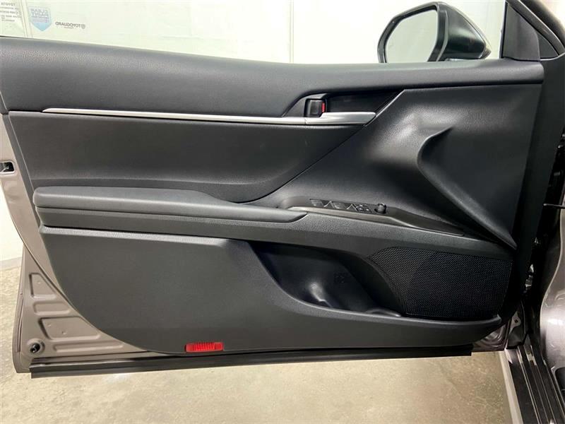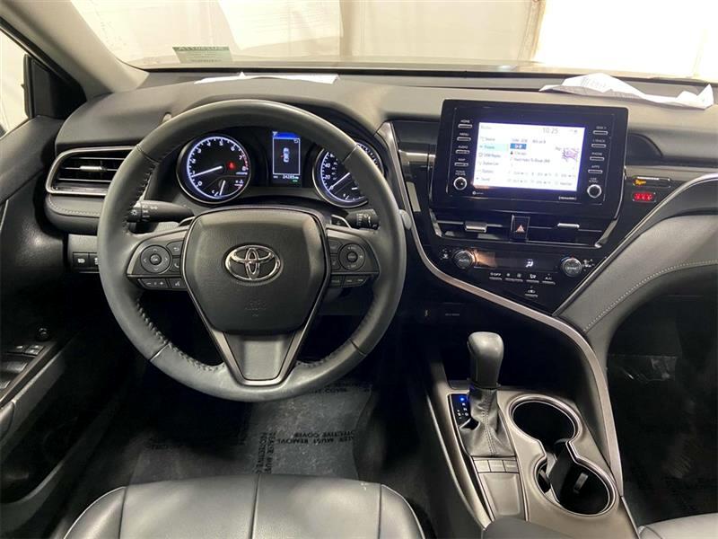 4-Wheel Disc Brakes, 6 Speakers, ABS brakes, Air Conditioning, Alloy wheels, AM/FM radio: SiriusXM, Apple CarPlay/Android Auto, Auto High-beam Headlights, Automatic temperature control, Brake assist, Bumpers: body-color, Delay-off headlights, Driver door bin, Driver vanity mirror, Dual front impact airbags, Dual front side impact airbags, Electronic Stability Control, Emergency communication system: Safety Connect (1-year trial), Exterior Parking Camera Rear, Four wheel independent suspension, Front anti-roll bar, Front Bucket Seats, Front Center Armrest, Front dual zone A/C, Front reading lights, Fully automatic headlights, Heated door mirrors, Illuminated entry, Knee airbag, Leather steering wheel, Low tire pressure warning, Occupant sensing airbag, Outside temperature display, Overhead airbag, Overhead console, Panic alarm, Passenger door bin, Passenger vanity mirror, Power door mirrors, Power driver seat, Power steering, Power windows, Radio data system, Radio: Audio, Rear anti-roll bar, Rear seat center armrest, Rear side impact airbag, Rear window defroster, Remote keyless entry, Security system, Speed control, Speed-sensing steering, Split folding rear seat, Spoiler, Sport SofTex Seat Trim w/Fabric Inserts, Steering wheel mounted audio controls, Tachometer, Telescoping steering wheel, Tilt steering wheel, Traction control, Trip computer, Turn signal indicator mirrors, Variably intermittent wipers. Gray 2023 Toyota Camry 8-Speed Automatic 2.5L I4 DOHC 16V FWD