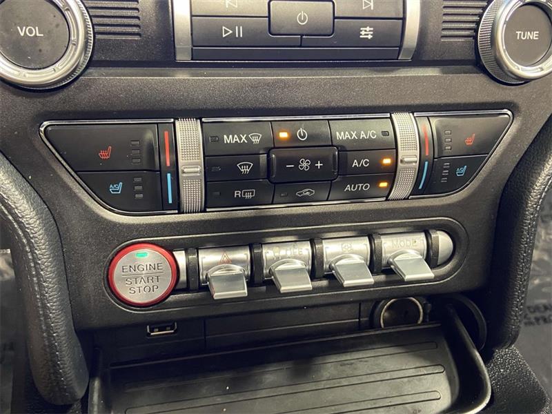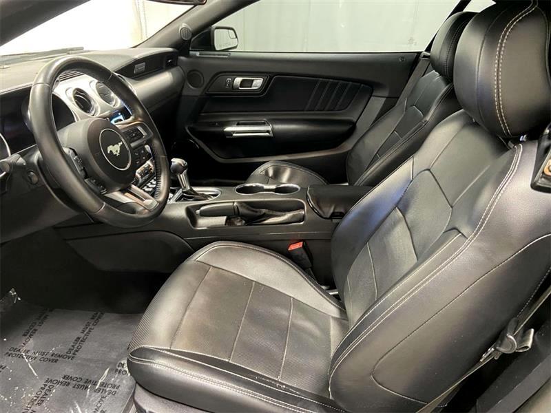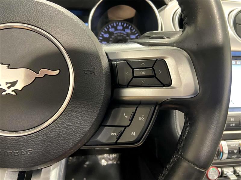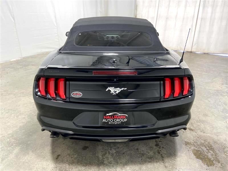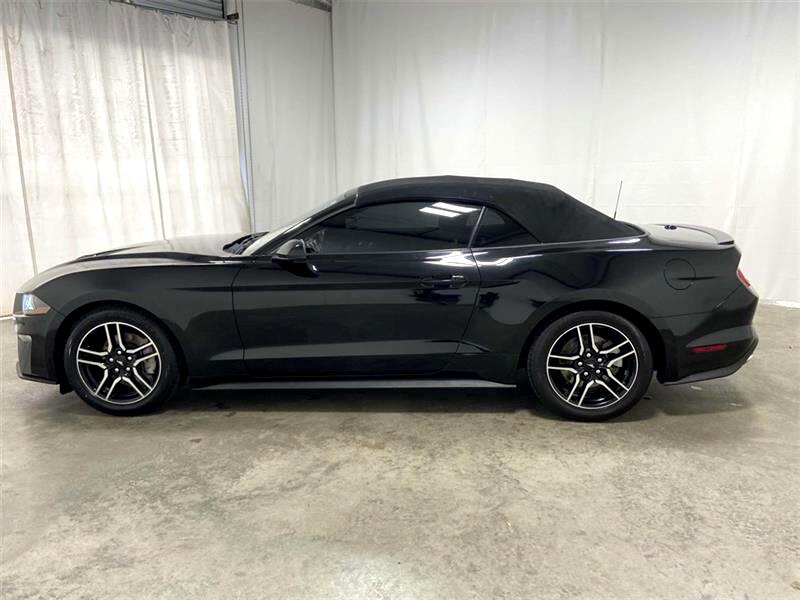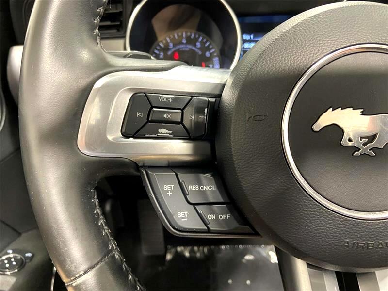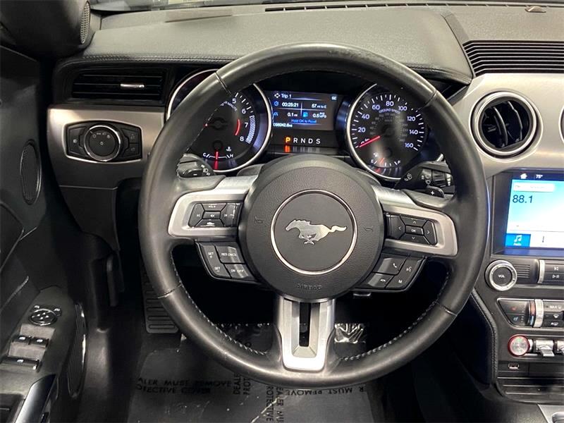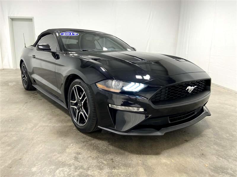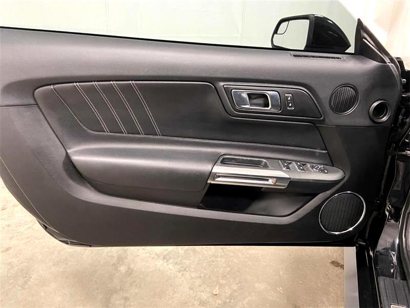 4-Wheel Disc Brakes, ABS brakes, Air Conditioning, Alloy wheels, AM/FM Stereo, Auto-dimming Rear-View mirror, Brake assist, Bumpers: body-color, Compass, Convertible roof lining, Delay-off headlights, Driver door bin, Driver vanity mirror, Dual front impact airbags, Dual front side impact airbags, Electronic Stability Control, Emergency communication system: 911 Assist, Exterior Parking Camera Rear, Four wheel independent suspension, Front anti-roll bar, Front Bucket Seats, Front Center Armrest, Front reading lights, Fully automatic headlights, Glass rear window, Illuminated entry, Knee airbag, Leather Shift Knob, Low tire pressure warning, Occupant sensing airbag, Outside temperature display, Overhead console, Panic alarm, Passenger door bin, Passenger vanity mirror, Power convertible roof, Power door mirrors, Power steering, Power windows, Radio data system, Rear anti-roll bar, Rear window defroster, Remote keyless entry, Security system, Speed control, Speed-sensing steering, Speed-Sensitive Wipers, Steering wheel mounted audio controls, Tachometer, Telescoping steering wheel, Tilt steering wheel, Traction control, Trip computer, Variably intermittent wipers, Voltmeter. Shadow Black 2019 Ford Mustang EcoBoost Premium 10-Speed Automatic EcoBoost 2.3L I4 GTDi DOHC Turbocharged VCT RWD