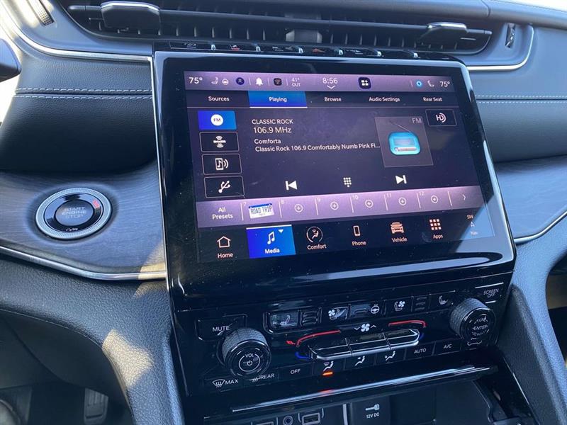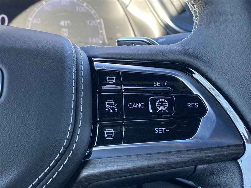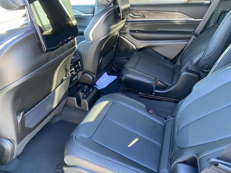 10 Speakers, 2nd Row Manual Window Shades, 3.45 Rear Axle Ratio, 3rd row seats: split-bench, 4-Wheel Disc Brakes, 7 & 4 Pin Wiring Harness, ABS brakes, Active Driving Assist System, Adaptive suspension, Advanced Protech Group III, Air Conditioning, Alloy wheels, AM/FM radio: SiriusXM with 360L, Amazon Fire TV Built-In, Anti-whiplash front head restraints, Audio memory, Auto High-beam Headlights, Auto-dimming door mirrors, Auto-dimming Rear-View mirror, Auto-leveling suspension, Automatic temperature control, Aux Battery, Brake assist, Bumpers: body-color, Class IV Receiver Hitch, Compass, Delay-off headlights, Driver door bin, Driver Power Seat Back Massage, Driver vanity mirror, Dual front impact airbags, Dual front side impact airbags, Electronic Stability Control, Emergency communication system, Four wheel independent suspension, Front anti-roll bar, Front Bucket Seats, Front Center Armrest w/Storage, Front dual zone A/C, Front fog lights, Front License Plate Bracket, Front Passenger Power Seat Back Massage, Front reading lights, Fully automatic headlights, Garage door transmitter, Hands-Free Active Driving Assist System, Heads-Up Display, Heated door mirrors, Heated front seats, Heated rear seats, Heated steering wheel, Illuminated entry, Integrated Off-Road Camera, Interior Rear Facing Camera, Intersection Collision Assist System, Knee airbag, Leather Wrapped Steering Wheel, Low tire pressure warning, Luxury Tech Group IV, Map-In-Cluster Display, Memory seat, Model Year Tracking, MOPAR Finishing Package, MOPAR Front Splash Guards, MOPAR Paint Protection Film, MOPAR Rear Splash Guards w/Jeep Logo, Nappa Leather Seats, Nappa Leather Seats (TL), Navigation System, Night Vision/Pedestrian-Animal Detection, Normal Duty Suspension, Occupant sensing airbag, Outside temperature display, Overhead airbag, Overhead console, Panic alarm, Passenger door bin, Passenger Seat Memory, Passenger vanity mirror, Power Adjust 12-Way Driver Seat, Power Adjust 12-Way Front Passenger Seat, Power door mirrors, Power driver seat, Power Fold Seatbacks, Power Liftgate, Power moonroof, Power passenger seat, Power steering, Power windows, Quick Order Package 23N, Radio data system, Radio: Uconnect 5 Nav w/10.1" Display, Rain sensing wipers, Rear air conditioning, Rear anti-roll bar, Rear Back Up Camera Washer, Rear reading lights, Rear Seat Video Group I, Rear window defroster, Rear window wiper, Rearview Autodim Digital Display Mirror, Reclining 3rd row seat, Remote keyless entry, Seatback Video Screens, Security system, Speed control, Speed-Sensitive Wipers, Split folding rear seat, Spoiler, Steering wheel memory, Steering wheel mounted audio controls, Surround View Camera System, Tachometer, Telescoping steering wheel, Tilt steering wheel, Traction control, Trailer Tow Package, Trip computer, Turn signal indicator mirrors, Variably intermittent wipers, Ventilated front seats, Video USB Port, Voltmeter, Wheels: 20" x 8.5" Machined Face Aluminum, Windshield Wiper De-Icer, Wireless Charging Pad.