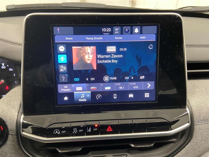 4WD, 17" x 7" Aluminum Wheels, 3.73 Final Drive Ratio, 4-Wheel Disc Brakes, 6 Speakers, ABS brakes, Air Conditioning, Alloy wheels, AM/FM radio: SiriusXM, Brake assist, Bumpers: body-color, Cloth Low-Back Bucket Seats, Compass, Delay-off headlights, Driver door bin, Driver vanity mirror, Dual front impact airbags, Dual front side impact airbags, Electronic Stability Control, Emergency communication system: Jeep Connect, Four wheel independent suspension, Front anti-roll bar, Front Bucket Seats, Front Center Armrest w/Storage, Front License Plate Bracket, Front reading lights, Fully automatic headlights, Heated door mirrors, Illuminated entry, Knee airbag, Leather steering wheel, Low tire pressure warning, MOPAR All-Weather Floor Mats, MOPAR Interior Protection Package, MOPAR Molded Cargo Tray, Occupant sensing airbag, Outside temperature display, Overhead airbag, Overhead console, Panic alarm, ParkView Rear Back-Up Camera, Passenger door bin, Passenger vanity mirror, Power door mirrors, Power steering, Power windows, Quick Order Package 29A, Radio: Uconnect 5 w/8.4" Display, Rear anti-roll bar, Rear seat center armrest, Rear window defroster, Rear window wiper, Remote keyless entry, Security system, Speed control, Split folding rear seat, Spoiler, Steering wheel mounted audio controls, Tachometer, Telescoping steering wheel, Tilt steering wheel, Traction control, Trip computer, Variably intermittent wipers, 4WD.