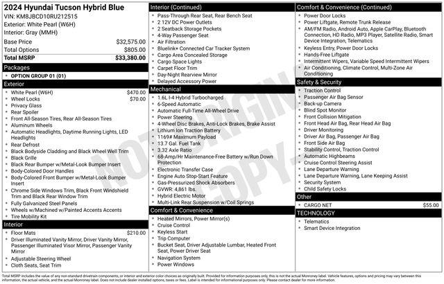 White Pearl 2024 Hyundai Tucson Hybrid Blue AWD 6-Speed Automatic I4