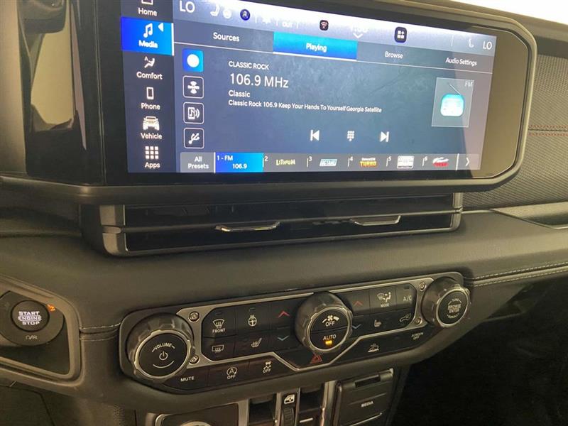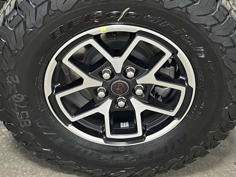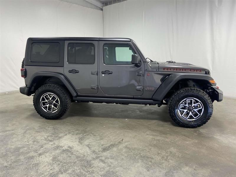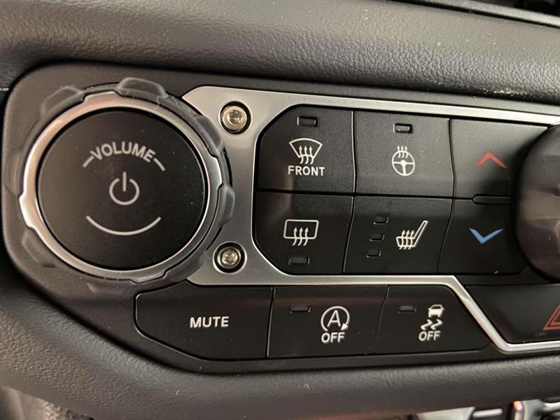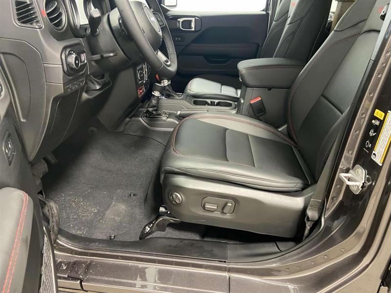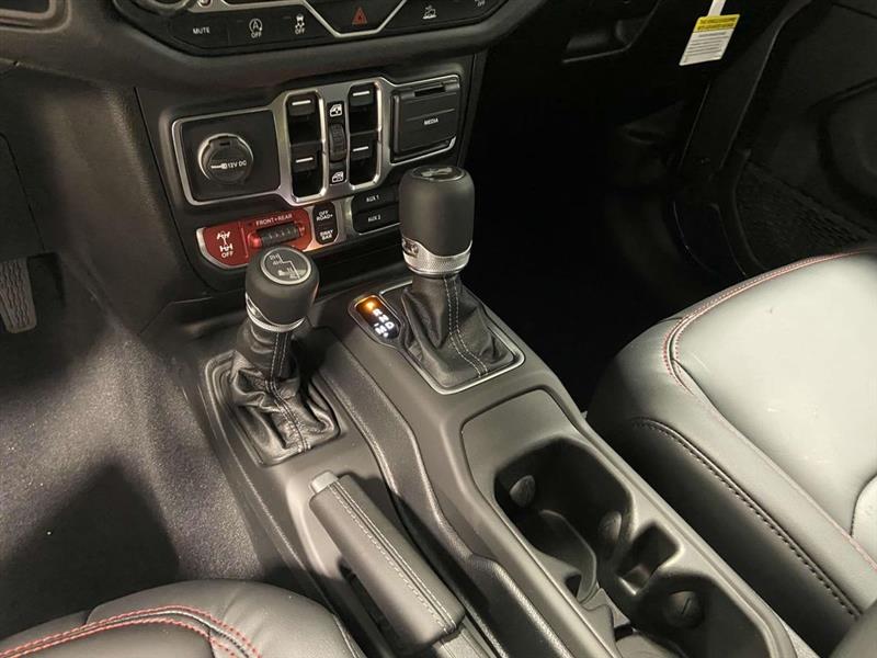 4-Wheel Disc Brakes, 4.10 Rear Axle Ratio, 4G LTE Wi-Fi Hot Spot, 8 Speakers, 97 MPH Vehicle Max Speed Calibration, ABS brakes, Air Conditioning, Alloy wheels, AM/FM radio: SiriusXM, Apple CarPlay, Apple CarPlay/Android Auto, Automatic temperature control, Aux Battery, Auxiliary Switches, Black 3-Piece Hard Top, Brake assist, Class II Receiver Hitch, Cloth Low-Back Bucket Seats, Compass, Connectivity - US/Canada, Convenience Group, Delay-off headlights, Driver door bin, Driver vanity mirror, Dual front impact airbags, Dual front side impact airbags, Dual Top Group, Electronic Stability Control, Emergency communication system: Jeep Connect, Freedom Panel Storage Bag, Front anti-roll bar, Front Bucket Seats, Front Center Armrest w/Storage, Front dual zone A/C, Front fog lights, Front reading lights, Fully automatic headlights, Google Android Auto, Heated door mirrors, Heated Front Seats, Heated Steering Wheel, Illuminated entry, Integrated roll-over protection, Low tire pressure warning, MOPAR All-Weather Floor Mats, Non-Lock Fuel Cap w/o Discriminator, Occupant sensing airbag, Outside temperature display, Overhead airbag, Panic alarm, ParkView Rear Back-Up Camera, Passenger door bin, Passenger vanity mirror, Performance Suspension, Power door mirrors, Power steering, Power windows, Premium Black Sunrider Soft Top w/Dual Top Group, Quick Order Package 22R Rubicon, Radio data system, Radio: Uconnect 5 w/12.3" Display, Rear anti-roll bar, Rear reading lights, Rear Window Defroster, Rear Window Wiper/Washer, Remote keyless entry, Security system, Speed control, Split folding rear seat, Steering wheel mounted audio controls, Stop-Start Dual Battery System, Tachometer, Telescoping steering wheel, Tilt steering wheel, Traction control, Trip computer, Universal Garage Door Opener, Variably intermittent wipers, Voltmeter, Wheels: 17" x 7.5" Machined/Painted Black.