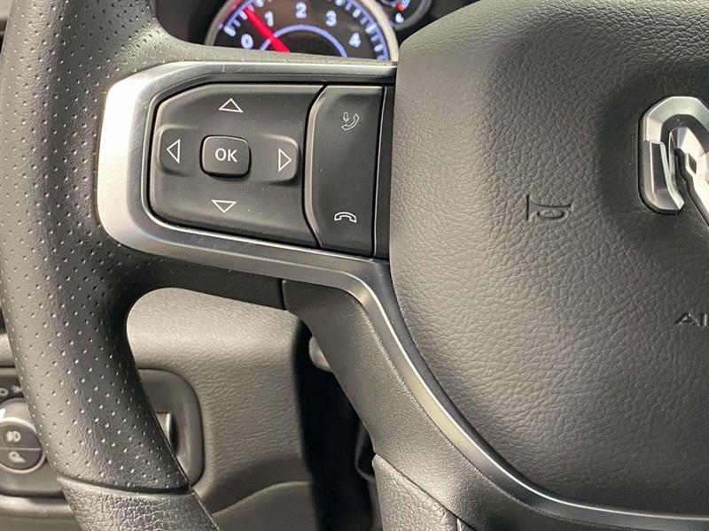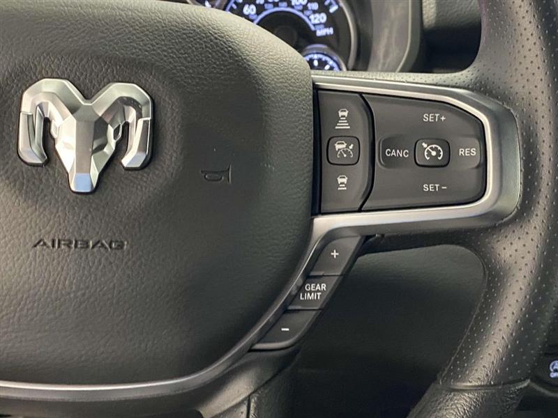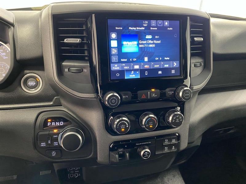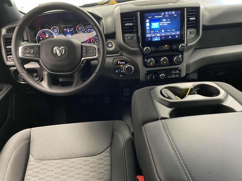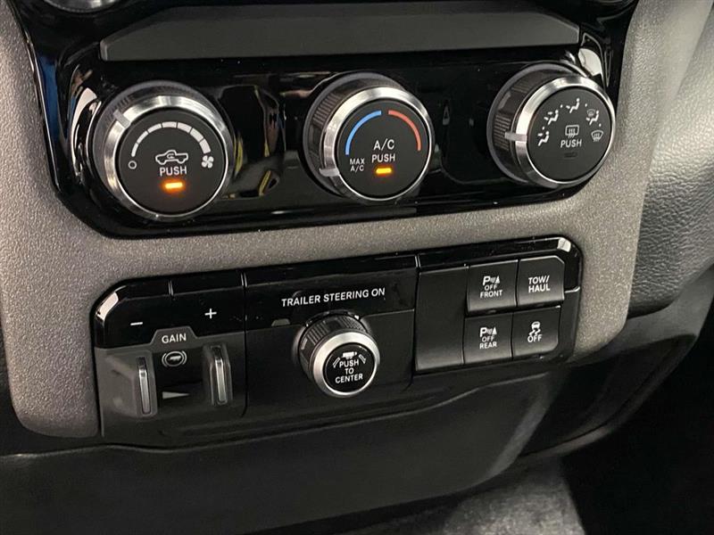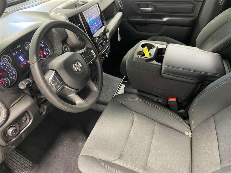 2nd Row In Floor Storage Bins, 3 Rear Seat Head Restraints, 3.21 Rear Axle Ratio, 3.92 Rear Axle Ratio, 4 Way Front Headrests, 4-Wheel Disc Brakes, 40/20/40 Split Bench Seat, 6 Speakers, ABS brakes, Accent Color Tailgate Handle, Air Conditioning, AM/FM radio, Anti-Spin Differential Rear Axle, Apple CarPlay/Android Auto, Auto High-beam Headlights, Black Exterior Mirrors, Black Interior Accents, Black Trailer Tow Power Mirrors, Body Color Front Bumper, Body Color Rear Bumper w/Step Pads, Brake assist, Cloth Bench Seat, Compass, Delay-off headlights, Driver door bin, Dual front impact airbags, Dual front side impact airbags, Electronic Stability Control, Exterior Mirrors Courtesy Lamps, Exterior Mirrors w/Heating Element, Exterior Mirrors w/Supplemental Signals, Front & Rear Floor Mats, Front anti-roll bar, Front Center Armrest, Front Center Seat Cushion Storage, Front LED Fog Lamps, Front reading lights, Front Seat Back Map Pockets, Front wheel independent suspension, Fully automatic headlights, Grille Black Surround Black Mesh, Heated door mirrors, Heavy Duty Vinyl 40/20/40 Split Bench Seat, Illuminated entry, Low tire pressure warning, Manual Adjust 4-Way Driver Seat, Manual Adjust 4-Way Front Passenger Seat, Manual Folding Exterior Mirrors, Manual Telescoping Mirrors, Mirror Clearance/Running Lights, Night Edition, Occupant sensing airbag, Outside temperature display, Overhead airbag, Overhead console, Panic alarm, ParkView Rear Back-Up Camera, Passenger door bin, Passenger vanity mirror, Power door mirrors, Power steering, Power windows, Power-Adjustable Convex Aux Mirrors, Protection Group, Quick Order Package 21A Tradesman, Radio data system, Radio: Uconnect 5 W w/8.4" Display, RAM Grille Badge - Black, Rear 60/40 Folding Seat, Rear anti-roll bar, Rear Power Sliding Window, Rear step bumper, Remote keyless entry, Seat Parts Module II, SiriusXM Satellite Radio, Speed control, Tachometer, Telescoping steering wheel, Tilt steering wheel, Tow Hooks, Towing Technology Group, Traction control, Tradesman Level 1 Equipment Group, Trailer Brake Control, Trailer Hitch Line-Up Assist, Trailer Reverse Steering Control, Trailer Tire Pressure Monitoring System, Trailer Tow Group, Trailer Tow Mirrors, Variably intermittent wipers, Voltmeter, Wheels: 18" x 7.5" Steel Painted, Wheels: 18" x 8.0" Black Painted Aluminum.