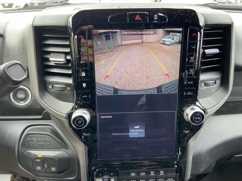 115V Auxiliary Front Power Outlet, 12" Touchscreen Display, 2 Way Rear Headrest Seat, 3.42 Axle Ratio, 3.73 Axle Ratio, 4 Way Front Headrests, 4-Wheel Disc Brakes, 40/20/40 Split Bench Seat, 400W Inverter, 4G LTE Wi-Fi Hot Spot, 5th Wheel/Gooseneck Towing Prep Group, 6 Speakers, ABS brakes, Air Conditioning, Air Conditioning ATC w/Dual Zone Control, Alexa Built-In, AM/FM radio: SiriusXM, Anti-Spin Differential Rear Axle, Apple CarPlay, Apple CarPlay/Android Auto, Auto-Dimming Rear-View Mirror, Bed Utility Group (DISC), Black Exterior Mirrors, Black Wheel Center Hub, Brake assist, Carpet Floor Covering, Clearance Lamps, Cloth 40/20/40 Bench Seat, Compass, Connected Travel & Traffic Services, Connectivity - US/Canada, Dash Pass Thru Wire Circuits, Delay-off headlights, Disassociated Touchscreen Display, Driver door bin, Dual front impact airbags, Dual front side impact airbags, Electronic Stability Control, Emergency Vehicle Alert System (EVAS), Exterior 115V AC Outlet, Exterior Mirrors Courtesy Lamps, Exterior Mirrors w/Heating Element, Exterior Mirrors w/Supplemental Signals, Front & Rear Floor Mats, Front anti-roll bar, Front Armrest w/Cupholders, Front Center Armrest w/Storage, Front fog lights, Front License Plate Bracket, Front reading lights, Fully automatic headlights, Global Telematics Box Module (TBM), Google Android Auto, GPS Antenna Input, GPS Navigation, HD Radio, Heavy Duty Vinyl 40/20/40 Split Bench Seat, I/P Mounted Auxiliary Switches, Illuminated entry, Integrated Voice Command w/Bluetooth, LED Bed Lighting, Low tire pressure warning, Manual Adjust 4-Way Driver Seat, Manual Adjust 4-Way Front Passenger Seat, Manual Folding Exterior Mirrors, Manual Telescoping Mirrors, Mirror Running Lights, Mopar Black Tubular Side Steps, MOPAR Deployable Bed Step, MOPAR Front & Rear Rubber Floor Mats, MOPAR Spray In Bedliner, Occupant sensing airbag, Off-Road Info Pages, Outside temperature display, Overhead airbag, Overhead console, Panic alarm, ParkSense Front/Rear Park Assist System, ParkView Rear Back-Up Camera, Passenger door bin, Passenger vanity mirror, Power Adjust Mirrors, Power Adjustable Convex Aux Mirrors, Power Heated Folding Telescope Mirrors, Power steering, Power windows, Quick Order Package 24A Tradesman, Radio data system, Radio: Uconnect 5 Nav w/12.0" Display, Radio: Uconnect 5 w/8.4" Display, Rear anti-roll bar, Rear Folding Seat, Rear Power Sliding Window, Rear step bumper, Rear window defroster, Remote keyless entry, Remote USB Port - Charge Only, Selectable Tire Fill Alert, SiriusXM Radio Service, SiriusXM w/360L, Speed control, Storage Tray, Tachometer, Tilt steering wheel, Tinted Acoustic Windshield Glass, Traction control, Tradesman Level 1 Equipment Group, Trailer Tow Pages, Variably intermittent wipers, Voltmeter, Wheels: 17" x 7.5" Black Steel Styled.