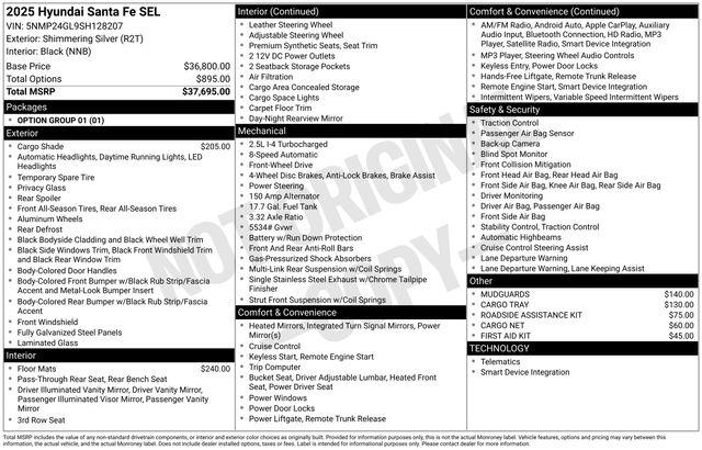 Shimmering Silver Pearl 2025 Hyundai Santa Fe SEL FWD Shiftronic 2.5L I4