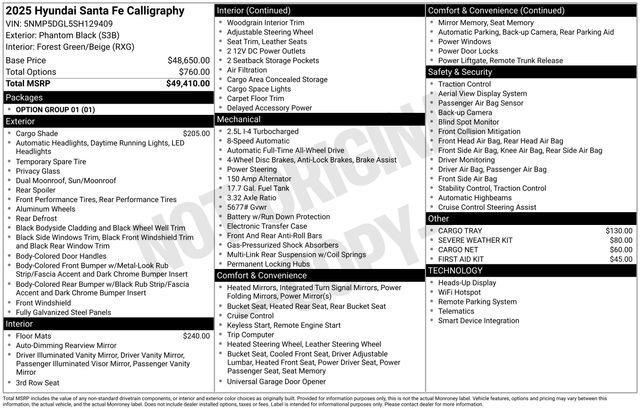 Phantom Black 2025 Hyundai Santa Fe Calligraphy AWD Shiftronic 2.5L I4