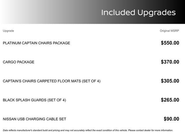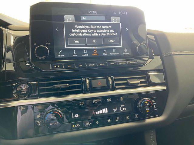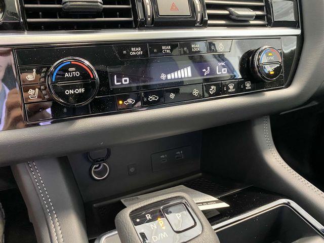 13 Speakers, 3rd row seats: bench, 4-Wheel Disc Brakes, ABS brakes, Air Conditioning, Alloy wheels, AM/FM radio: SiriusXM, Auto High-beam Headlights, Auto tilt-away steering wheel, Auto-dimming Rear-View mirror, Automatic temperature control, Bodyside moldings, Bose Premium Audio System, Brake assist, Bumpers: body-color, Climate Controlled Front Bucket Seats, Delay-off headlights, Driver door bin, Driver vanity mirror, Dual front impact airbags, Dual front side impact airbags, Electronic Stability Control, Emergency communication system, Exterior Parking Camera Rear, Four wheel independent suspension, Front anti-roll bar, Front Bucket Seats, Front Center Armrest, Front dual zone A/C, Front reading lights, Fully automatic headlights, Garage door transmitter: HomeLink, Heads-Up Display, Heated door mirrors, Heated front seats, Heated rear seats, Heated steering wheel, Illuminated entry, Knee airbag, Leather steering wheel, Low tire pressure warning, Memory seat, Navigation system: NissanConnect with Navigation and Services, NissanConnect featuring Apple CarPlay and Android Auto, NissanConnect w/Navigation & Services, Occupant sensing airbag, Outside temperature display, Overhead airbag, Overhead console, Panic alarm, Passenger door bin, Passenger vanity mirror, Power door mirrors, Power driver seat, Power Liftgate, Power moonroof, Power passenger seat, Power steering, Power windows, Radio data system, Radio: AM/FM Audio System, Rain sensing wipers, Rear air conditioning, Rear anti-roll bar, Rear reading lights, Rear seat center armrest, Rear side impact airbag, Rear window defroster, Rear window wiper, Reclining 3rd row seat, Remote keyless entry, Security system, Semi-Aniline Leather-Appointed Seating Surfaces, Speed control, Speed-sensing steering, Speed-Sensitive Wipers, Split folding rear seat, Spoiler, Steering wheel memory, Steering wheel mounted audio controls, Tachometer, Telescoping steering wheel, Tilt steering wheel, Traction control, Trip computer, Turn signal indicator mirrors, Variably intermittent wipers, Ventilated front seats, Wheels: 20" x 8J Machined Alloy.
