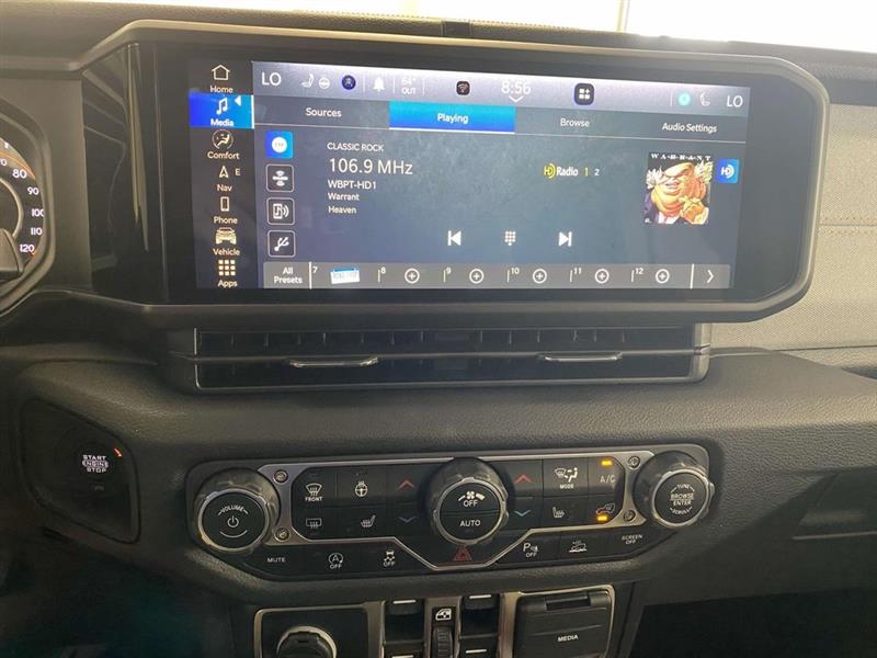 110 MPH Vehicle Max Speed Calibration, 12.3" Touchscreen Display, 3.73 Rear Axle Ratio, 4-Wheel Disc Brakes, 400W Inverter, 4G LTE Wi-Fi Hot Spot, 8 Speakers, ABS brakes, Air Conditioning, Alexa Built-In, AM/FM radio: SiriusXM, Apple CarPlay, Apple CarPlay/Android Auto, Auxiliary Switches, Black 3-Piece Hard Top, Brake assist, Cloth Low-Back Bucket Seats, Compass, Connected Travel & Traffic Services, Connectivity - US/Canada, Convenience Group, Daytime Running Lamp System, Delay-off headlights, Driver door bin, Driver vanity mirror, Dual front impact airbags, Dual front side impact airbags, Electronic Stability Control, Freedom Panel Storage Bag, Front anti-roll bar, Front Bucket Seats, Front Center Armrest w/Storage, Front fog lights, Front reading lights, Full Speed Forward Collision Warning Plus, Google Android Auto, GPS Navigation, Heated door mirrors, Heated Steering Wheel, Illuminated entry, Integrated roll-over protection, LED Taillamps, Low tire pressure warning, MOPAR Spray In Bedliner, Normal Duty Suspension, Occupant sensing airbag, Off-Road Plus Mode, Outside temperature display, Overhead airbag, Panic alarm, ParkView Rear Back-Up Camera, Passenger door bin, Passenger vanity mirror, Power door mirrors, Power steering, Power windows, Quick Order Package 24W Willys, Radio data system, Radio: Uconnect 5 Nav w/12.3" Display, Radio: Uconnect 5 w/12.3" Display, Rear anti-roll bar, Rear reading lights, Rear Window Defroster, Remote keyless entry, Remote Start System, Safety Group, Security Alarm, SiriusXM w/360L, Speed control, Split folding rear seat, Steering wheel mounted audio controls, Sun Visors w/Illuminated Vanity Mirrors, Tachometer, Technology Group, Telescoping steering wheel, Tilt steering wheel, Traction control, Trip computer, USB Host Flip, Variably intermittent wipers, Voltmeter, Wheels: 17" x 7.5" Black Steel Styled, Willys Hood Decal, Willys Suspension.