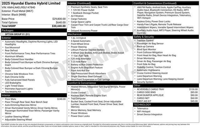 Fluid Metal 2025 Hyundai Elantra Hybrid Limited FWD 6-Speed Dual Clutch I4