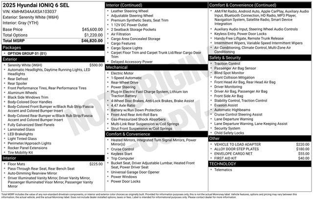 Serenity White 2025 Hyundai IONIQ 6 SEL RWD 1-Speed Automatic Electric Motor