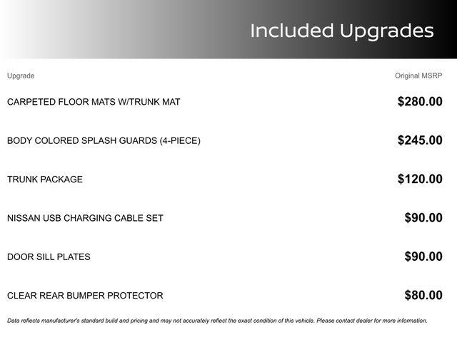 CVT with Xtronic, Charcoal Cloth, 16" Alloy Wheels, 4-Wheel Disc Brakes, 8 Speakers, ABS brakes, Air Conditioning, Alloy wheels, AM/FM radio: SiriusXM, Auto High-beam Headlights, Blind Spot Warning, Brake assist, Bumpers: body-color, Delay-off headlights, Driver door bin, Driver vanity mirror, Dual front impact airbags, Dual front side impact airbags, Electronic Stability Control, Four wheel independent suspension, Front anti-roll bar, Front Bucket Seats, Front Center Armrest, Front reading lights, Fully automatic headlights, Illuminated entry, Knee airbag, Low tire pressure warning, NissanConnect featuring Apple CarPlay and Android Auto, Occupant sensing airbag, Outside temperature display, Overhead airbag, Overhead console, Panic alarm, Passenger door bin, Passenger vanity mirror, Power door mirrors, Power steering, Power windows, Radio data system, Radio: AM/FM w/RDS/MP3/Aux-In, Rear anti-roll bar, Rear Parking Sensors, Rear side impact airbag, Rear window defroster, Remote keyless entry, Security system, Speed control, Speed-sensing steering, Split folding rear seat, Steering wheel mounted audio controls, Tachometer, Telescoping steering wheel, Tilt steering wheel, Traction control, Trip computer, Upgraded Cloth Seat Trim, Variably intermittent wipers, CVT with Xtronic, Charcoal Cloth.