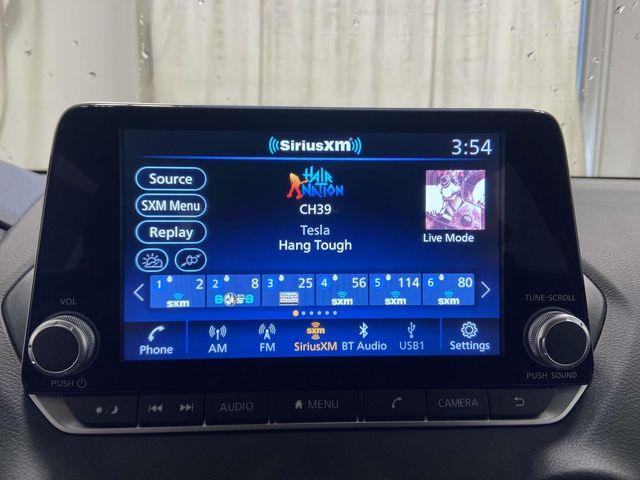 CVT with Xtronic, Charcoal Cloth, 16" Alloy Wheels, 4-Wheel Disc Brakes, 8 Speakers, ABS brakes, Air Conditioning, Alloy wheels, AM/FM radio: SiriusXM, Auto High-beam Headlights, Blind Spot Warning, Brake assist, Bumpers: body-color, Delay-off headlights, Driver door bin, Driver vanity mirror, Dual front impact airbags, Dual front side impact airbags, Electronic Stability Control, Four wheel independent suspension, Front anti-roll bar, Front Bucket Seats, Front Center Armrest, Front reading lights, Fully automatic headlights, Illuminated entry, Knee airbag, Low tire pressure warning, NissanConnect featuring Apple CarPlay and Android Auto, Occupant sensing airbag, Outside temperature display, Overhead airbag, Overhead console, Panic alarm, Passenger door bin, Passenger vanity mirror, Power door mirrors, Power steering, Power windows, Radio data system, Radio: AM/FM w/RDS/MP3/Aux-In, Rear anti-roll bar, Rear Parking Sensors, Rear side impact airbag, Rear window defroster, Remote keyless entry, Security system, Speed control, Speed-sensing steering, Split folding rear seat, Steering wheel mounted audio controls, Tachometer, Telescoping steering wheel, Tilt steering wheel, Traction control, Trip computer, Upgraded Cloth Seat Trim, Variably intermittent wipers, CVT with Xtronic, Charcoal Cloth.