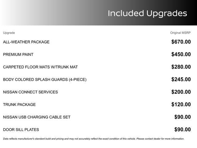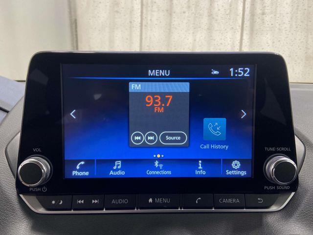 CVT with Xtronic, Charcoal Cloth, 16" Alloy Wheels, 4-Wheel Disc Brakes, 8 Speakers, ABS brakes, Air Conditioning, Alloy wheels, AM/FM radio: SiriusXM, Auto High-beam Headlights, Blind Spot Warning, Brake assist, Bumpers: body-color, Delay-off headlights, Driver door bin, Driver vanity mirror, Dual front impact airbags, Dual front side impact airbags, Electronic Stability Control, Four wheel independent suspension, Front anti-roll bar, Front Bucket Seats, Front Center Armrest, Front reading lights, Fully automatic headlights, Illuminated entry, Knee airbag, Low tire pressure warning, NissanConnect featuring Apple CarPlay and Android Auto, Occupant sensing airbag, Outside temperature display, Overhead airbag, Overhead console, Panic alarm, Passenger door bin, Passenger vanity mirror, Power door mirrors, Power steering, Power windows, Radio data system, Radio: AM/FM w/RDS/MP3/Aux-In, Rear anti-roll bar, Rear Parking Sensors, Rear side impact airbag, Rear window defroster, Remote keyless entry, Security system, Speed control, Speed-sensing steering, Split folding rear seat, Steering wheel mounted audio controls, Tachometer, Telescoping steering wheel, Tilt steering wheel, Traction control, Trip computer, Upgraded Cloth Seat Trim, Variably intermittent wipers, CVT with Xtronic, Charcoal Cloth.