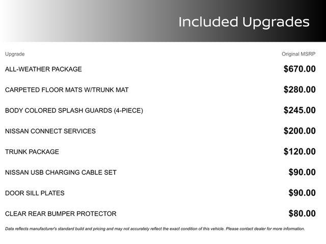 CVT with Xtronic, Charcoal Cloth, 16" Alloy Wheels, 4-Wheel Disc Brakes, 8 Speakers, ABS brakes, Air Conditioning, Alloy wheels, AM/FM radio: SiriusXM, Auto High-beam Headlights, Blind Spot Warning, Brake assist, Bumpers: body-color, Delay-off headlights, Driver door bin, Driver vanity mirror, Dual front impact airbags, Dual front side impact airbags, Electronic Stability Control, Four wheel independent suspension, Front anti-roll bar, Front Bucket Seats, Front Center Armrest, Front reading lights, Fully automatic headlights, Illuminated entry, Knee airbag, Low tire pressure warning, NissanConnect featuring Apple CarPlay and Android Auto, Occupant sensing airbag, Outside temperature display, Overhead airbag, Overhead console, Panic alarm, Passenger door bin, Passenger vanity mirror, Power door mirrors, Power steering, Power windows, Radio data system, Radio: AM/FM w/RDS/MP3/Aux-In, Rear anti-roll bar, Rear Parking Sensors, Rear side impact airbag, Rear window defroster, Remote keyless entry, Security system, Speed control, Speed-sensing steering, Split folding rear seat, Steering wheel mounted audio controls, Tachometer, Telescoping steering wheel, Tilt steering wheel, Traction control, Trip computer, Upgraded Cloth Seat Trim, Variably intermittent wipers, CVT with Xtronic, Charcoal Cloth.