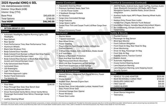 Onyx Black 2025 Hyundai IONIQ 6 SEL RWD 1-Speed Automatic Electric Motor