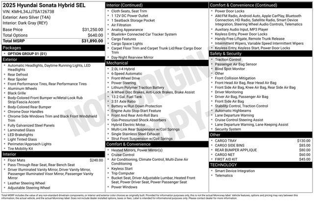 Aero Silver 2025 Hyundai Sonata Hybrid SEL FWD 6-Speed Automatic with Shiftronic I4