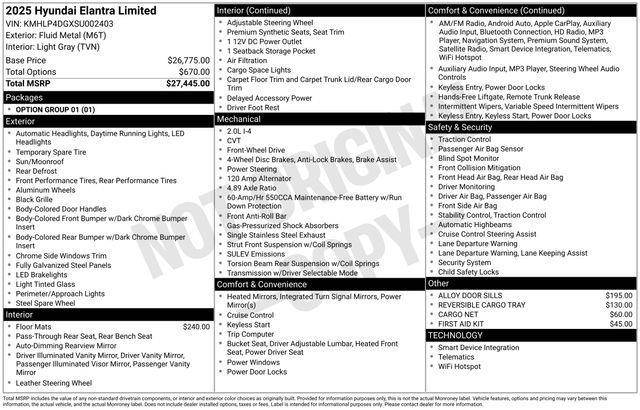 Fluid Metal 2025 Hyundai Elantra Limited FWD CVT I4