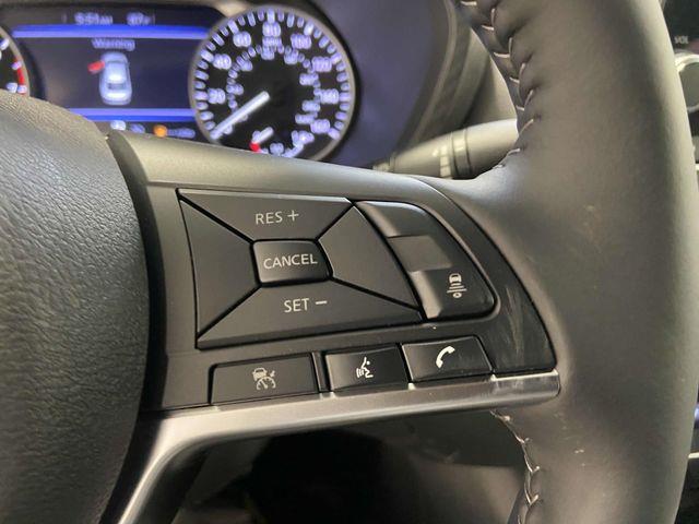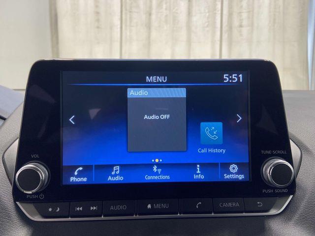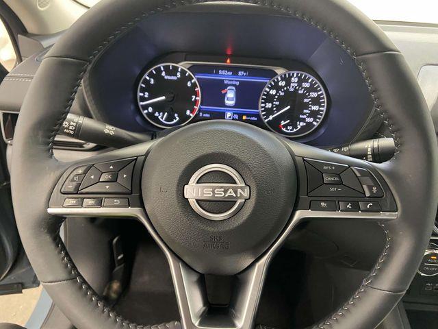 CVT with Xtronic, Charcoal Cloth, 16" Alloy Wheels, 4-Wheel Disc Brakes, 8 Speakers, ABS brakes, Air Conditioning, Alloy wheels, AM/FM radio: SiriusXM, Auto High-beam Headlights, Blind Spot Warning, Brake assist, Bumpers: body-color, Delay-off headlights, Driver door bin, Driver vanity mirror, Dual front impact airbags, Dual front side impact airbags, Electronic Stability Control, Four wheel independent suspension, Front anti-roll bar, Front Bucket Seats, Front Center Armrest, Front reading lights, Fully automatic headlights, Illuminated entry, Knee airbag, Low tire pressure warning, NissanConnect featuring Apple CarPlay and Android Auto, Occupant sensing airbag, Outside temperature display, Overhead airbag, Overhead console, Panic alarm, Passenger door bin, Passenger vanity mirror, Power door mirrors, Power steering, Power windows, Radio data system, Radio: AM/FM w/RDS/MP3/Aux-In, Rear anti-roll bar, Rear Parking Sensors, Rear side impact airbag, Rear window defroster, Remote keyless entry, Security system, Speed control, Speed-sensing steering, Split folding rear seat, Steering wheel mounted audio controls, Tachometer, Telescoping steering wheel, Tilt steering wheel, Traction control, Trip computer, Upgraded Cloth Seat Trim, Variably intermittent wipers, CVT with Xtronic, Charcoal Cloth.