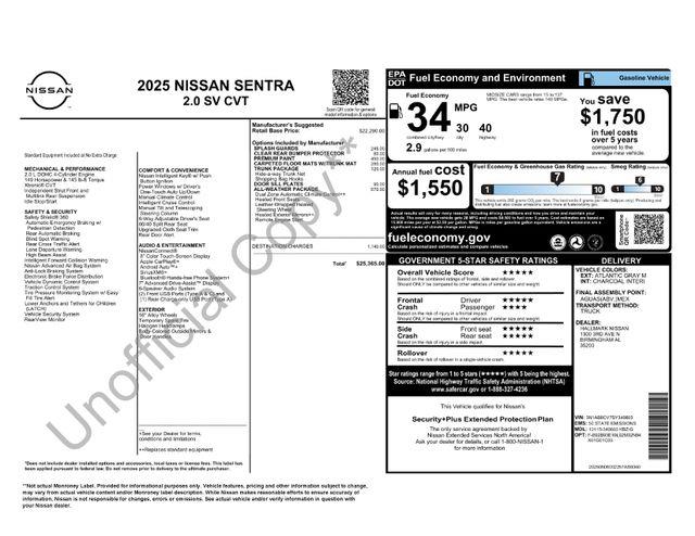Atlantic Gray Metallic 2025 Nissan Sentra SV FWD CVT with Xtronic 2.0L I4 DOHC