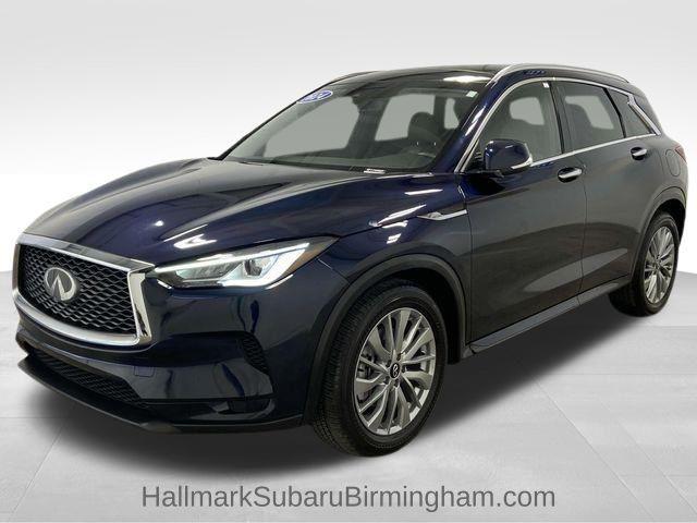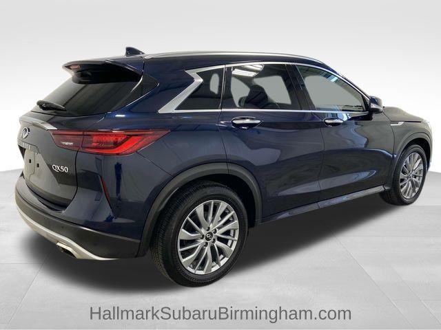 A luxurious and recent arrival at Hallmark Subaru of Birmingham, we are thrilled to offer this stunning, nearly-new 2024 INFINITI QX50 LUXE. Finished in an elegant Hermosa Blue with a sophisticated interior, this premium crossover boasts an exceptional blend of cutting-edge technology, powerful variable-compression engine performance, and supreme comfort. With a Clean CARFAX and documented CARFAX One-Owner history, this vehicle represents a superb opportunity to own modern luxury and dependability.