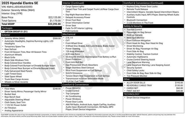 Serenity White 2025 Hyundai Elantra SE FWD CVT I4