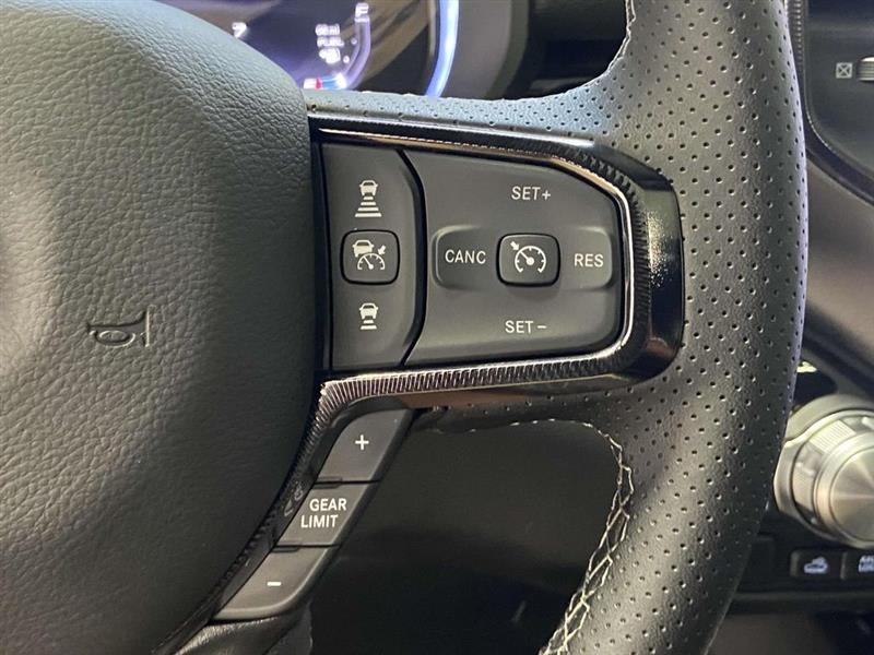 ABS brakes, Active Cruise Control, Alloy wheels, Compass, Electronic Stability Control, Front dual zone A/C, GPS Navigation, Heated door mirrors, Heated front seats, Illuminated entry, Low tire pressure warning, Manual Folding Exterior Mirrors, ParkView Rear Back-Up Camera, Remote keyless entry, Traction control, 10 Speakers, 3.92 Rear Axle Ratio, 4 Way Front Headrests, 4-Wheel Disc Brakes, 4G LTE Wi-Fi Hot Spot, Air Conditioning, AM/FM radio: SiriusXM with 360L, Apple CarPlay, Apple CarPlay/Android Auto, Auto High-beam Headlights, Auto-dimming Rear-View mirror, Automatic temperature control, Brake assist, Bucket Seats, Cloth/Vinyl Bucket Seats, Connected Travel & Traffic Services, Connectivity - US/Canada, Convex Wide-Angle Exterior Mirror Insert, Delay-off headlights, Driver door bin, Driver vanity mirror, Dual front impact airbags, Dual front side impact airbags, Exterior Mirrors w/Heating Element, Front anti-roll bar, Front Bucket Seats, Front Center Armrest w/Storage, Front fog lights, Front reading lights, Front Seat Back Map Pockets, Front wheel independent suspension, Full Length Upgraded Floor Console, Fully automatic headlights, Garage door transmitter, Google Android Auto, GPS Antenna Input, Heated steering wheel, Integrated Voice Command w/Bluetooth, Leather steering wheel, Occupant sensing airbag, Outside temperature display, Overhead airbag, Overhead console, Panic alarm, Passenger door bin, Passenger vanity mirror, Power Adjust 8-Way Driver Seat, Power door mirrors, Power driver seat, Power steering, Power windows, Radio data system, Radio: Uconnect 5 Nav w/12.0" Display, Rear 60/40 Folding Seat, Rear anti-roll bar, Rear seat center armrest, Rear step bumper, SiriusXM w/360L, Speed control, Split folding rear seat, Steering wheel mounted audio controls, Tachometer, Telescoping steering wheel, Tilt steering wheel, Trip computer, USB Host Flip, Variably intermittent wipers, Voltmeter, Wheels: 18" x 8.0" Painted Mid-Gloss Black, ABS brakes, Active Cruise Control, Alloy wheels, Compass, Electronic Stability Control, Front dual zone A/C, GPS Navigation, Heated door mirrors, Heated front seats, Illuminated entry, Low tire pressure warning, Manual Folding Exterior Mirrors, ParkView Rear Back-Up Camera, Remote keyless entry, Traction control.