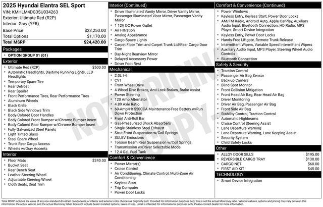 Ultimate Red 2025 Hyundai Elantra SEL Sport FWD CVT I4