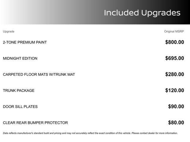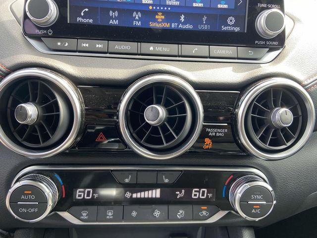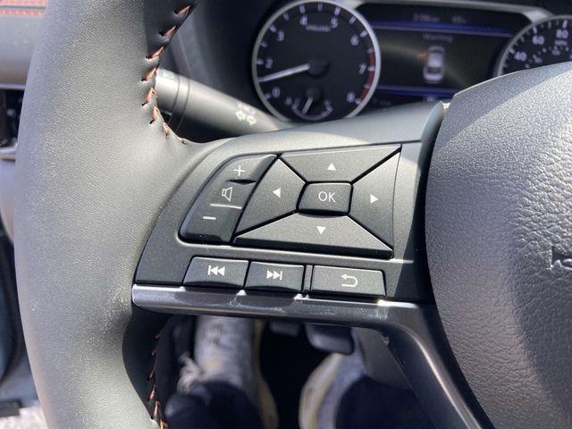 CVT with Xtronic, Sport Cloth, 18" Alloy Wheels, 4-Wheel Disc Brakes, 8 Speakers, ABS brakes, Air Conditioning, Alloy wheels, AM/FM radio: SiriusXM, Auto High-beam Headlights, Automatic temperature control, Blind Spot Warning, Brake assist, Bumpers: body-color, Delay-off headlights, Driver door bin, Driver vanity mirror, Dual front impact airbags, Dual front side impact airbags, Electronic Stability Control, Four wheel independent suspension, Front anti-roll bar, Front Bucket Seats, Front Center Armrest, Front dual zone A/C, Front reading lights, Fully automatic headlights, Heated door mirrors, Heated Front Bucket Seats, Heated front seats, Illuminated entry, Knee airbag, Leather Shift Knob, Low tire pressure warning, NissanConnect featuring Apple CarPlay and Android Auto, Occupant sensing airbag, Outside temperature display, Overhead airbag, Overhead console, Panic alarm, Passenger door bin, Passenger vanity mirror, Power door mirrors, Power steering, Power windows, Radio data system, Radio: AM/FM w/RDS/MP3/Aux-In, Rear anti-roll bar, Rear Parking Sensors, Rear seat center armrest, Rear side impact airbag, Rear window defroster, Remote keyless entry, Security system, Speed control, Speed-sensing steering, Split folding rear seat, Spoiler, Sport Cloth Seat Trim, Steering wheel mounted audio controls, Tachometer, Telescoping steering wheel, Tilt steering wheel, Traction control, Trip computer, Turn signal indicator mirrors, Variably intermittent wipers, CVT with Xtronic, Sport Cloth.