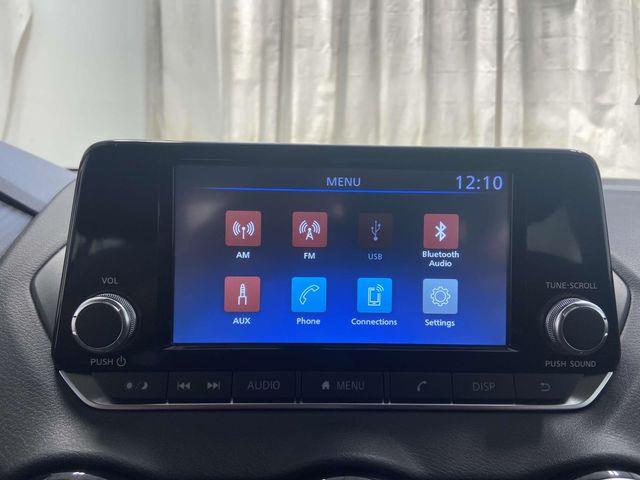 CVT with Xtronic, Charcoal Cloth, 16" Steel Wheels w/Full Wheel Covers, 4 Speakers, ABS brakes, Air Conditioning, AM/FM radio, Auto High-beam Headlights, Blind Spot Warning, Brake assist, Bumpers: body-color, Cloth Seat Trim, Delay-off headlights, Driver door bin, Driver vanity mirror, Dual front impact airbags, Dual front side impact airbags, Electronic Stability Control, Four wheel independent suspension, Front anti-roll bar, Front Bucket Seats, Front Center Armrest, Front reading lights, Fully automatic headlights, Illuminated entry, Knee airbag, Low tire pressure warning, NissanConnect featuring Apple CarPlay and Android Auto, Occupant sensing airbag, Outside temperature display, Overhead airbag, Overhead console, Panic alarm, Passenger door bin, Passenger vanity mirror, Power door mirrors, Power steering, Power windows, Radio data system, Radio: AM/FM w/RDS/MP3/Aux-In, Rear anti-roll bar, Rear Parking Sensors, Rear side impact airbag, Rear window defroster, Remote keyless entry, Speed control, Speed-sensing steering, Split folding rear seat, Steering wheel mounted audio controls, Tachometer, Telescoping steering wheel, Tilt steering wheel, Traction control, Trip computer, Variably intermittent wipers, CVT with Xtronic, Charcoal Cloth.