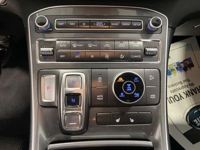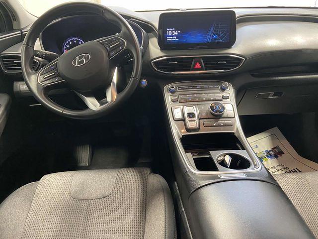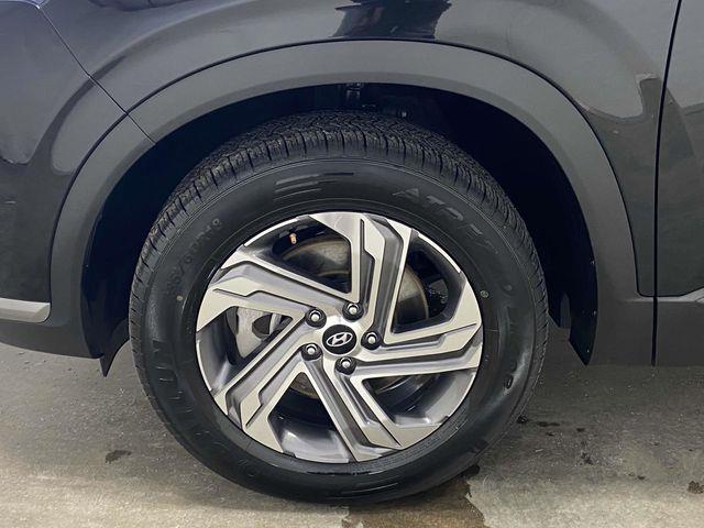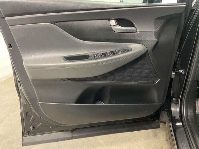AWD, Gray Cloth, 18" x 7.5J Alloy Wheels, 4-Wheel Disc Brakes, 6 Speakers, ABS brakes, Air Conditioning, Alloy wheels, AM/FM radio: SiriusXM, Apple CarPlay & Android Auto, Auto High-beam Headlights, Automatic temperature control, Axle Ratio: 4.081, Brake assist, Bumpers: body-color, Delay-off headlights, Driver door bin, Driver vanity mirror, Dual front impact airbags, Dual front side impact airbags, Electronic Stability Control, Emergency communication system, Exterior Parking Camera Rear, Four wheel independent suspension, Front anti-roll bar, Front Bucket Seats, Front Center Armrest, Front dual zone A/C, Front reading lights, Fully automatic headlights, Heated door mirrors, Heated Front Bucket Seats, Heated front seats, Illuminated entry, Leather steering wheel, Low tire pressure warning, Navigation System, Occupant sensing airbag, Option Group 01, Outside temperature display, Overhead airbag, Overhead console, Panic alarm, Passenger door bin, Passenger vanity mirror, Power door mirrors, Power driver seat, Power Liftgate, Power steering, Power windows, Radio: AM/FM Display Audio, Rear anti-roll bar, Rear seat center armrest, Rear window defroster, Rear window wiper, Remote keyless entry, Security system, Speed control, Speed-sensing steering, Split folding rear seat, Spoiler, Stain-Resistant Cloth Seat Trim, Steering wheel mounted audio controls, Tachometer, Telescoping steering wheel, Tilt steering wheel, Traction control, Trip computer, Turn signal indicator mirrors, Variably intermittent wipers, AWD, Gray Cloth. Twilight Black 2023 Hyundai Santa Fe SEL 8-Speed Automatic with SHIFTRONIC 2.5L I4 AWD