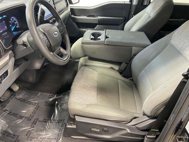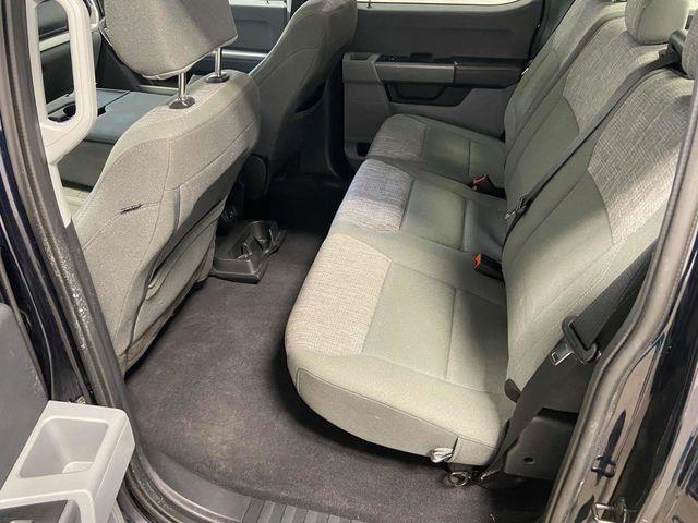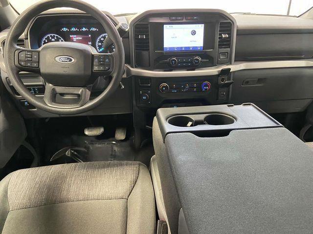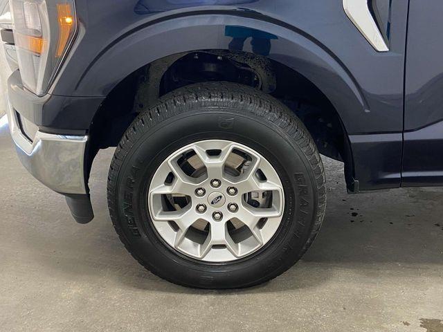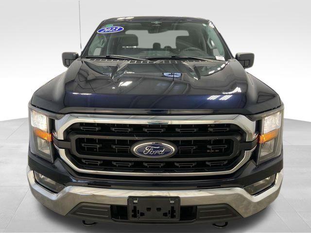 4WD, 18" Silver Painted Aluminum Wheels, 3.31 Axle Ratio, 4-Wheel Disc Brakes, 6 Speakers, 8-Way Power Driver's Seat w/Power Lumbar, ABS brakes, Air Conditioning, Alloy wheels, AM/FM radio, Auto High-beam Headlights, Brake assist, Bumpers: chrome, Cloth 40/20/40 Front Seat, Compass, Delay-off headlights, Driver door bin, Driver vanity mirror, Dual front impact airbags, Dual front side impact airbags, Electronic Stability Control, Emergency communication system: SYNC 4 911 Assist, Exterior Parking Camera Rear, Front anti-roll bar, Front Center Armrest w/Storage, Front fog lights, Front License Plate Bracket, Front reading lights, Front wheel independent suspension, Fully automatic headlights, Heated door mirrors, Illuminated entry, Low tire pressure warning, Occupant sensing airbag, Outside temperature display, Overhead airbag, Overhead console, Panic alarm, Passenger door bin, Passenger vanity mirror, Power door mirrors, Power steering, Power windows, Radio data system, Radio: AM/FM Stereo w/6 Speakers, Rear reading lights, Rear step bumper, Rear window defroster, Remote keyless entry, Security system, Speed control, Speed-sensing steering, Split folding rear seat, Steering wheel mounted audio controls, SYNC 4, Tachometer, Telescoping steering wheel, Tilt steering wheel, Traction control, Trip computer, Variably intermittent wipers, Voltmeter, Wheels: 17" Silver Painted Aluminum, 4WD. Blue Metallic 2023 Ford F-150 XLT 10-Speed Automatic 3.5L V6 EcoBoost 4WD