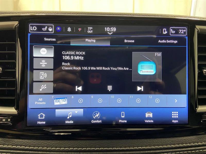 10.1" Touchscreen Display, 17" x 7.0" Aluminum Wheels, 3.25 Axle Ratio, 360 Surround View Camera System, 3rd row seats: split-bench, 4-Wheel Disc Brakes, 4G LTE Wi-Fi Hot Spot, 6 Speakers, 8-Passenger Seating, ABS brakes, Air Conditioning, Alloy wheels, AM/FM radio: SiriusXM, Apple CarPlay, Apple CarPlay/Android Auto, Auto-dimming Rear-View mirror, Automatic temperature control, Black Seats, Brake assist, Bumpers: body-color, Caprice Leatherette Bucket Seats, Compass, Connectivity - US/Canada, Delay-off headlights, Disassociated Touchscreen Display, Driver door bin, Driver vanity mirror, Driver's Seat Mounted Armrest, Dual front impact airbags, Dual front side impact airbags, Electronic Stability Control, Emergency communication system: Chrysler Connect, For Details, Visit DriveUconnect.com, Four wheel independent suspension, Front anti-roll bar, Front Bucket Seats, Front dual zone A/C, Front fog lights, Front reading lights, Fully automatic headlights, Garage door transmitter, Google Android Auto, GPS Antenna Input, Heated door mirrors, Heated front seats, Heated steering wheel, Illuminated entry, Integrated Active Noise Cancellation, Integrated Center Stack Radio, Knee airbag, Low tire pressure warning, Memory seat, Occupant sensing airbag, Outside temperature display, Overhead airbag, Overhead console, Panic alarm, ParkSense Front/Rear Park Assist w/Stop, ParkView Rear Back-Up Camera, Passenger door bin, Passenger seat mounted armrest, Passenger vanity mirror, Power door mirrors, Power driver seat, Power Liftgate, Power Open/Close Shade, Power steering, Power windows, Quick Order Package 27L, Radio data system, Radio: Uconnect 5 w/10.1" Display, Rain sensing wipers, Rear air conditioning, Rear reading lights, Rear window defroster, Rear window wiper, Reclining 3rd row seat, Remote keyless entry, Safety Sphere, Security system, Speed control, Split folding rear seat, Spoiler, Steering wheel mounted audio controls, Tachometer, Telescoping steering wheel, Tilt steering wheel, Touring Suspension, Traction control, Trip computer, Turn signal indicator mirrors, USB Host Flip, Variably intermittent wipers, Voltmeter.