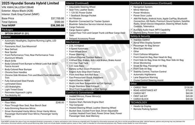 Abyss Black 2025 Hyundai Sonata Hybrid Limited FWD 6-Speed Automatic with Shiftronic I4