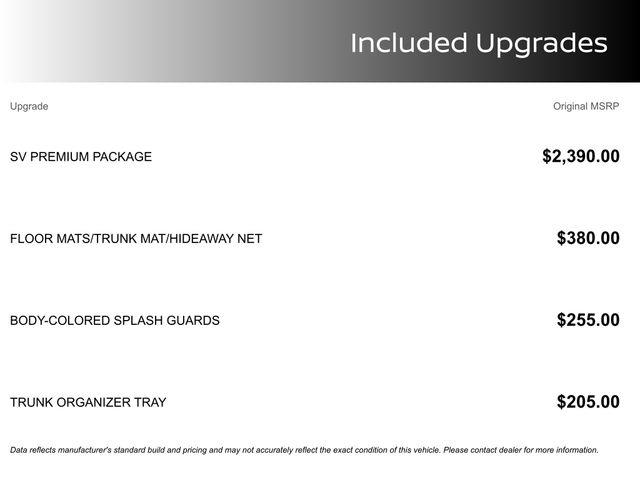 CVT with Xtronic, 17" Machined Alloy Wheels, 4-Wheel Disc Brakes, 6 Speakers, ABS brakes, Air Conditioning, Alloy wheels, AM/FM radio: SiriusXM, Auto High-beam Headlights, Blind Spot Warning, Brake assist, Bumpers: body-color, Cloth Seat Trim, Delay-off headlights, Driver door bin, Driver vanity mirror, Dual front impact airbags, Dual front side impact airbags, Electronic Stability Control, Four wheel independent suspension, Front anti-roll bar, Front Bucket Seats, Front Center Armrest, Front reading lights, Fully automatic headlights, Illuminated entry, Knee airbag, Low tire pressure warning, NissanConnect featuring Apple CarPlay and Android Auto, Occupant sensing airbag, Outside temperature display, Overhead airbag, Overhead console, Panic alarm, Passenger door bin, Passenger vanity mirror, Power door mirrors, Power driver seat, Power steering, Power windows, Radio data system, Radio: AM/FM Audio System, Rear anti-roll bar, Rear Parking Sensors, Rear reading lights, Rear seat center armrest, Rear side impact airbag, Rear window defroster, Remote keyless entry, Security system, Speed control, Speed-sensing steering, Speed-Sensitive Wipers, Split folding rear seat, Steering wheel mounted audio controls, Tachometer, Telescoping steering wheel, Tilt steering wheel, Traction control, Trip computer, Variably intermittent wipers, CVT with Xtronic.