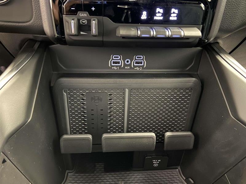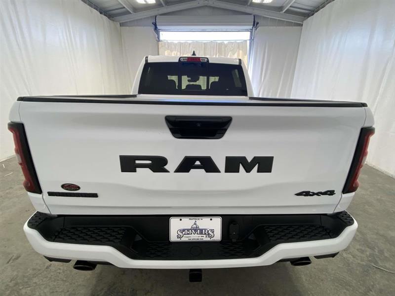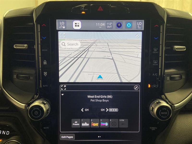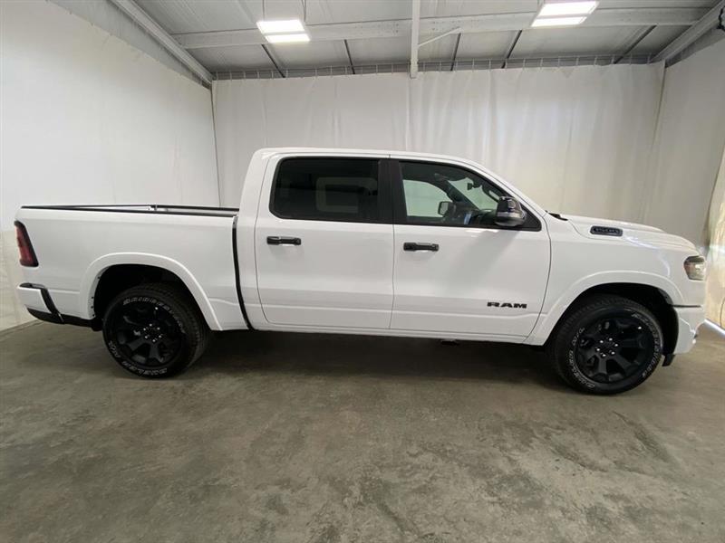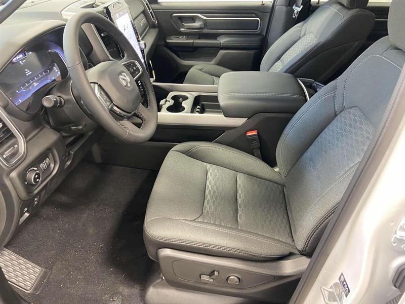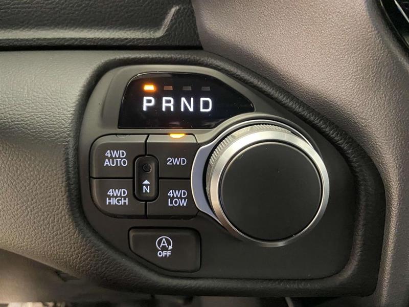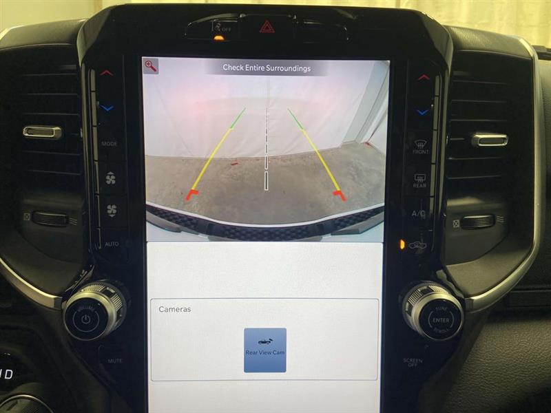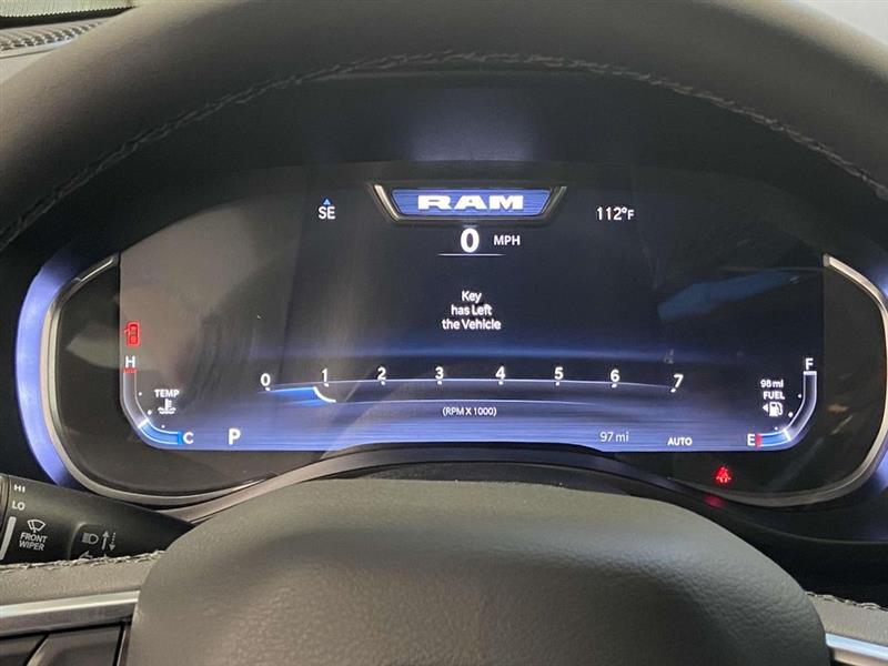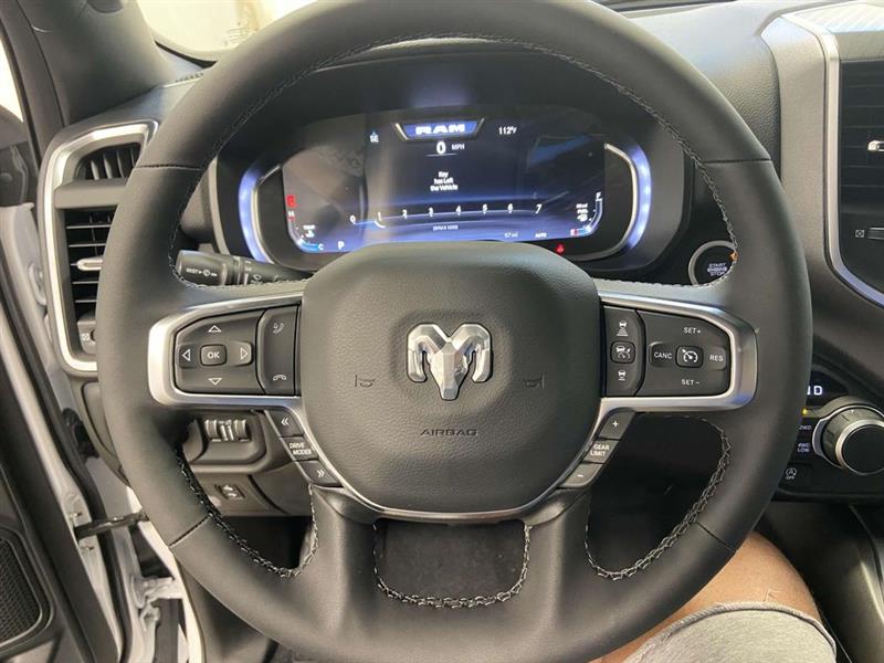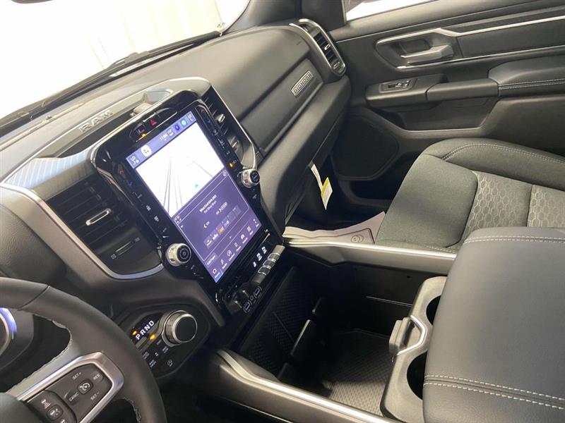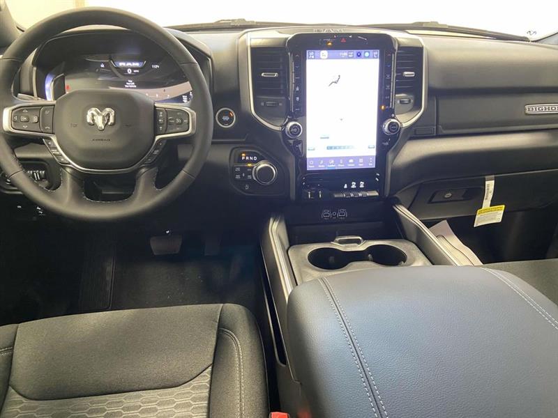 115V Auxiliary Power Outlet, 115V Auxiliary Rear Power Outlet, 12" Touchscreen Display, 2nd Row In Floor Storage Bins, 3 Rear Seat Head Restraints, 4 Way Front Headrests, 4-Wheel Disc Brakes, 400W Inverter, 48V Belt Starter Generator, 4G LTE Wi-Fi Hot Spot, 6 Speakers, 9 Amplified Speakers w/Subwoofer, ABS brakes, Accent Color Door Handles, Accent Color Premium Power Mirrors, Accent Color Tailgate Handle, Air Conditioning, Air Conditioning ATC w/Dual Zone Control, Alloy wheels, AM/FM radio, Anti-Spin Differential Rear Axle, Apple CarPlay, Apple CarPlay/Android Auto, Auto High-beam Headlights, Auto Power-Folding Mirrors, Auto-Dimming Exterior Driver Mirror, Auto-Dimming Rear-View Mirror, Big Horn Level 2 Equipment Group, Black Exterior Mirrors, Black Exterior Truck Badging, Black Headlamp Bezels, Black Interior Accents, Black Painted Exterior Mirrors Caps, Black Premium Power Mirrors, Black Tail Lamp Bezels, Body Color Fender Flares, Body Color Front Bumper, Body Color Rear Bumper w/Step Pads, Brake assist, Bucket Seats, Bumpers: chrome, Center Console Parts Module, Cloth Bucket Seats, Cluster 12" TFT Color Display, Cluster 7.0" TFT Color Display, Compass, Configurable Drive Mode, Connected Travel & Traffic Services, Connectivity - US/Canada, Convex Wide-Angle Exterior Mirror Insert, Delay-off headlights, Deluxe Cloth Bucket Seats, Disassociated Touchscreen Display, Driver door bin, Dual Exhaust w/Black Tips, Dual front impact airbags, Dual front side impact airbags, Electronic Stability Control, Exterior Mirrors Courtesy Lamps, Exterior Mirrors w/Heating Element, Exterior Mirrors w/Supplemental Signals, Front anti-roll bar, Front Bucket Seats, Front Center Armrest w/Storage, Front fog lights, Front reading lights, Front Seat Back Map Pockets, Front wheel independent suspension, Full Length Floor Console, Fully automatic headlights, Global Telematics Box Module (TBM), Glove Box Lamp, Google Android Auto, GPS Antenna Input, GPS Navigation, Grille Black Surround Black Mesh, HD Radio, Heated door mirrors, Heated Front Seats, Heated Steering Wheel, Illuminated entry, Integrated Center Stack Radio, Integrated Voice Command w/Bluetooth, Leather Wrapped Steering Wheel, LED Dome Lamp w/On/Off Switch, LED Footwell Lighting, Low tire pressure warning, Manual Adjust 4-Way Driver Seat, Manual Adjust 4-Way Front Passenger Seat, Manual Folding Exterior Mirrors, Manufacturer's Statement of Origin, Media Hub w/2 Charge Only USBs, MOPAR Front & Rear Rubber Floor Mats, Night Edition, Occupant sensing airbag, Outside temperature display, Overhead airbag, Overhead console, Overhead LED Lamps, Panic alarm, ParkView Rear Back-Up Camera, Passenger door bin, Passenger vanity mirror, Power 2-Way Driver Lumbar Adjust, Power Adjust 8-Way Driver Seat, Power Adjustable Pedals, Power door mirrors, Power steering, Power windows, Premium Overhead Console, Quick Order Package 21Z Big Horn, Radio data system, Radio: Uconnect 5 Nav w/12.0" Display, Radio: Uconnect 5 W w/8.4" Display, RAM Grille Badge - Black, RAM Grille Badge - Chrome, Rear 60/40 Folding Seat, Rear anti-roll bar, Rear Center Armrest, Rear Power Sliding Window, Rear step bumper, Rear Wheelhouse Liners, Rear Window Defroster, Remote keyless entry, Remote Tailgate Release, Security Alarm, SiriusXM Radio Service, SiriusXM w/360L, Speed control, Steering Wheel Mounted Audio Controls, Sun Visors w/Illuminated Vanity Mirrors, Supplier Part Tracking (J-1), Tachometer, Telescoping steering wheel, Tilt steering wheel, Traction control, Trailer Brake Control, Trip computer, Universal Garage Door Opener, USB Host Flip, Variably intermittent wipers, Voltmeter, Wheels: 18" x 8" Cast-Aluminum Painted, Wheels: 20" x 9.0" Aluminum Painted Clad, Wheels: 20" x 9" Aluminum Chrome Clad (WRK).