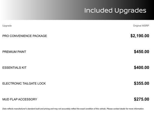 4WD, 17" Painted Alloy Wheels, 3.692 Axle Ratio, 4-Wheel Disc Brakes, 6 Speakers, ABS brakes, Air Conditioning, Alloy wheels, AM/FM radio: SiriusXM, Anti-whiplash front head restraints, Auto High-beam Headlights, Automatic temperature control, Blind Spot Warning, Brake assist, Bumpers: body-color, Delay-off headlights, Driver door bin, Driver vanity mirror, Dual front impact airbags, Dual front side impact airbags, Electronic Stability Control, Emergency communication system, Front anti-roll bar, Front Bucket Seats, Front Center Armrest, Front dual zone A/C, Front fog lights, Front reading lights, Front wheel independent suspension, Fully automatic headlights, Illuminated entry, Knee airbag, Leather Shift Knob, Leather steering wheel, Low tire pressure warning, Occupant sensing airbag, Overhead airbag, Overhead console, Panic alarm, Passenger door bin, Passenger vanity mirror, Power door mirrors, Power driver seat, Power passenger seat, Power steering, Power windows, PRO Embroidered Premium Cloth Seat Trim, Radio data system, Radio: SXM/AM/FM/AUX/USB Audio System, Rear anti-roll bar, Rear seat center armrest, Rear side impact airbag, Rear step bumper, Remote keyless entry, Security system, Speed control, Speed-sensing steering, Split folding rear seat, Steering wheel mounted audio controls, Tachometer, Telescoping steering wheel, Tilt steering wheel, Traction control, Trip computer, Variably intermittent wipers, Voltmeter, Wireless Apple CarPlay/Wireless Android Auto, 4WD.