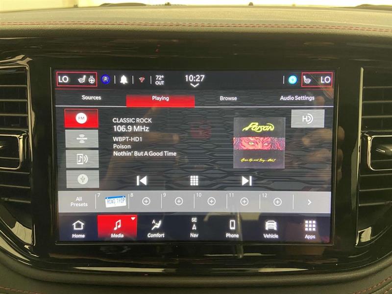 AWD, 115V Auxiliary Power Outlet, 180 Amp Alternator, 19 harman/kardon Amplified Speakers w/Subwoofer, 3.45 Rear Axle Ratio, 3rd row seats: split-bench, 4-Wheel Disc Brakes, 506 Watt Amplifier, 6 Speakers, 7 & 4 Pin Wiring Harness, 825 Watt Amplifier, 9 Alpine Amplified Speakers w/Subwoofer, ABS brakes, Adaptive Cruise Control w/Stop, Advanced Brake Assist, Air Conditioning, Alloy wheels, AM/FM radio: SiriusXM w/360L, Apple CarPlay/Android Auto, Auto High Beam Headlamp Control, Auto-Dimming Exterior Driver Mirror, Auto-dimming Rear-View mirror, Automatic temperature control, Black Roof Rails, Blacktop Package, Blind Spot w/Trailer Detection, Brake assist, Bright Cargo Area Scuff Pads, Bumpers: body-color, Class IV Receiver Hitch, Cloth Bucket Seats w/Shift Insert, Compass, Delay-off headlights, Driver door bin, Driver vanity mirror, Dual front impact airbags, Dual front side impact airbags, Dual Remote USB Port - Charge Only, Electronic Stability Control, Emergency communication system: Dodge Connect, Exterior Mirrors w/Heating Element, Exterior Mirrors w/Memory, Exterior Mirrors w/Supplemental Signals, Four wheel independent suspension, Front anti-roll bar, Front Bucket Seats, Front Center Armrest w/Storage, Front dual zone A/C, Front reading lights, Full Speed Forward Collision Warning Plus, Fully automatic headlights, Garage door transmitter, Gloss Black Badges, Gloss Black Exterior Mirrors, GT Gloss Black Badging, Heated door mirrors, Heated front seats, Heated Second Row Seats, Heated steering wheel, Heavy-Duty Engine Cooling, Illuminated entry, Integrated Roof Rail Crossbars, Knee airbag, Lane Departure Warning Plus, Leather steering wheel, Leather Trimmed Bucket Seats, Leather Wrapped Door Panels, LED Auxiliary Low Beam & Turn Signal, Low tire pressure warning, Navigation System, Occupant sensing airbag, Outside temperature display, Overhead airbag, Overhead console, Panic alarm, ParkSense Front/Rear Park Assist w/Stop, ParkView Rear Back-Up Camera, Passenger door bin, Passenger vanity mirror, Power 6x9 Multi-Function Foldaway Mirrors, Power 8-Way Driver Memory 8-Way Passenger Seats, Power door mirrors, Power driver seat, Power Driver/Passenger 4-Way Lumbar Adjust, Power Liftgate, Power steering, Power Sunroof, Power Tilt & Telescopic Steering Column, Power windows, Quick Order Package 2BH GT Plus, Radio data system, Radio: Uconnect 5 Nav w/10.1" Display, Rear air conditioning, Rear anti-roll bar, Rear Load Leveling Suspension, Rear reading lights, Rear seat center armrest, Rear window defroster, Rear window wiper, Red Accent Stitching, Remote keyless entry, Satin Black Dodge Tail Lamp Badge, Security Alarm, Speed control, Speed-sensing steering, Speed-Sensitive Wipers, Split folding rear seat, Spoiler, Sport steering wheel, Steering wheel mounted audio controls, Sun Visors w/Illuminated Vanity Mirrors, Tachometer, Telescoping steering wheel, Tilt steering wheel, Traction control, Trailer Brake Control, Trip computer, Variably intermittent wipers, Ventilated Front Seats, Voltmeter, Wheels: 20" x 8" Black Noise Aluminum, Wheels: 20" x 8" Fine Silver, Wireless Charging Pad, AWD.
