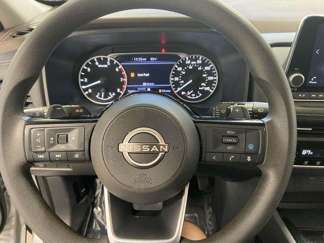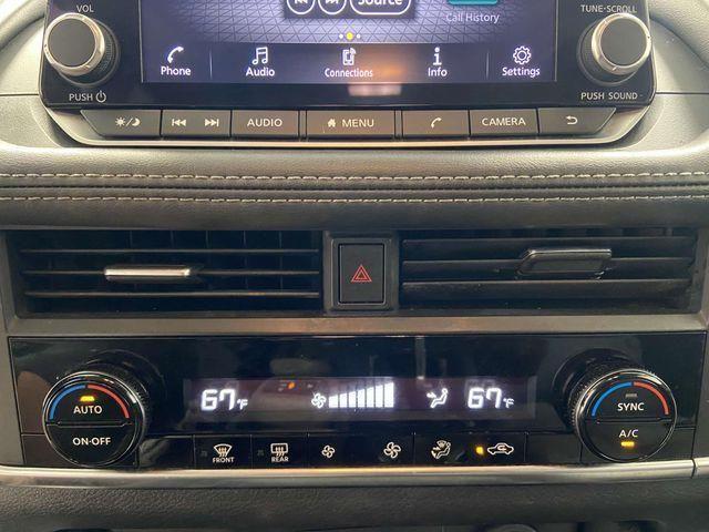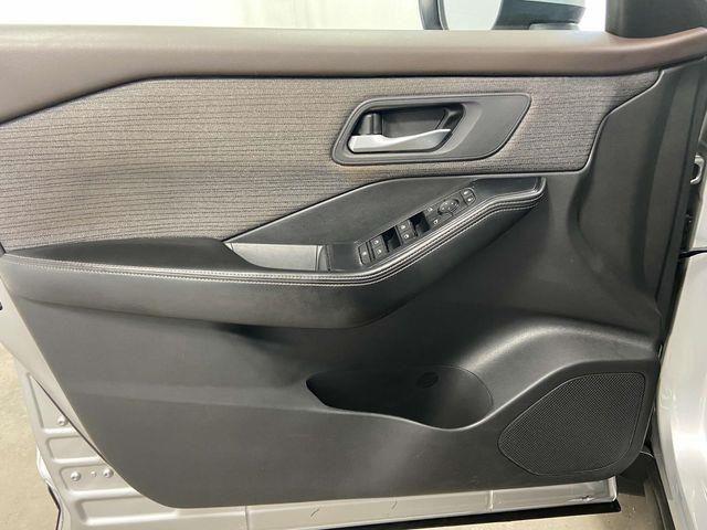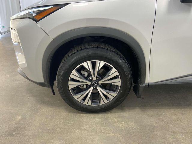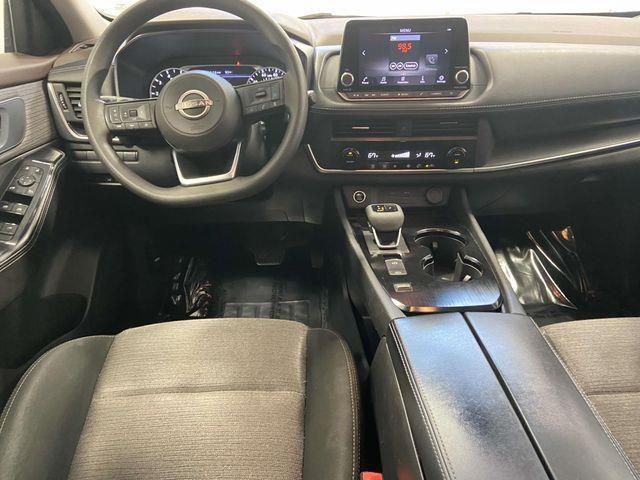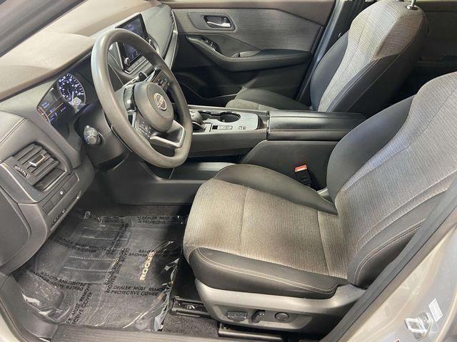 18" Aluminum Alloy Wheels, 4-Wheel Disc Brakes, 5.604 Axle Ratio, 6 Speakers, ABS brakes, Air Conditioning, Alloy wheels, AM/FM Radio, AM/FM radio: SiriusXM, Auto High-beam Headlights, Automatic temperature control, Black Splash Guards (Set of 4), Brake assist, Bumpers: body-color, Chrome Rear Bumper Protector, Cloth Seat Trim, Delay-off headlights, Driver door bin, Driver vanity mirror, Dual front impact airbags, Dual front side impact airbags, Electronic Stability Control, Emergency communication system: NissanConnect Services, Floor Mats w/1-Piece Cargo Area Protector, Four wheel independent suspension, Front anti-roll bar, Front Bucket Seats, Front Center Armrest, Front dual zone A/C, Front reading lights, Fully automatic headlights, Heated door mirrors, Illuminated entry, Knee airbag, Low tire pressure warning, NissanConnect featuring Apple CarPlay and Android Auto, Occupant sensing airbag, Outside temperature display, Overhead airbag, Overhead console, Panic alarm, Passenger door bin, Passenger vanity mirror, Power door mirrors, Power driver seat, Power steering, Power windows, Radio data system, Rear anti-roll bar, Rear Parking Sensors, Rear seat center armrest, Rear side impact airbag, Rear window defroster, Rear window wiper, Remote keyless entry, Retractable Cargo Cover, Speed control, Speed-Sensitive Wipers, Split folding rear seat, Spoiler, Steering wheel mounted audio controls, Tachometer, Telescoping steering wheel, Tilt steering wheel, Traction control, Trip computer, Variably intermittent wipers. Brilliant Silver Metallic 2023 Nissan Rogue SV CVT with Xtronic 1.5L I3 Turbocharged DOHC 12V LEV3-ULEV50 201hp FWD