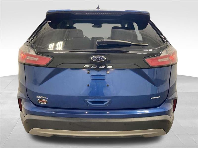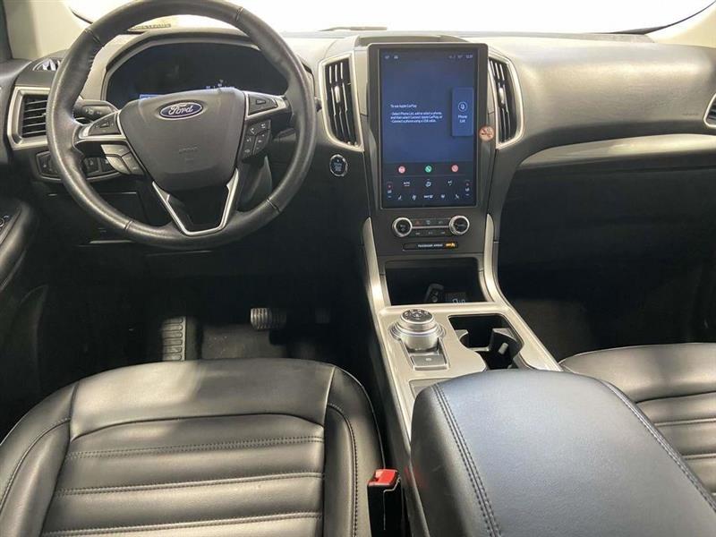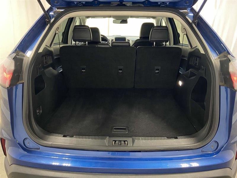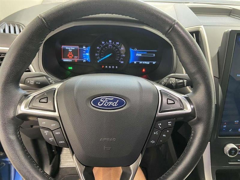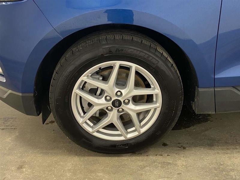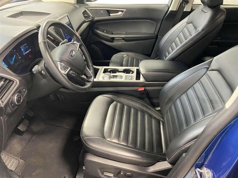 AWD, 3.80 Axle Ratio, 4-Wheel Disc Brakes, 6 Speakers, ABS brakes, ActiveX Trimmed Heated Bucket Seats, Air Conditioning, Alloy wheels, AM/FM radio: SiriusXM with 360L, AM/FM Stereo, Auto High-beam Headlights, Auto-dimming Rear-View mirror, Automatic temperature control, Brake assist, Bumpers: body-color, Compass, Delay-off headlights, Driver door bin, Driver vanity mirror, Dual front impact airbags, Dual front side impact airbags, Electronic Stability Control, Emergency communication system: SYNC 4 911 Assist, FordPass Connect, Four wheel independent suspension, Front anti-roll bar, Front Bucket Seats, Front Center Armrest w/Storage, Front dual zone A/C, Front reading lights, Fully automatic headlights, Heated door mirrors, Heated front seats, Illuminated entry, Knee airbag, Leather steering wheel, Low tire pressure warning, Occupant sensing airbag, Outside temperature display, Overhead airbag, Overhead console, Panic alarm, Passenger door bin, Passenger vanity mirror, Power door mirrors, Power driver seat, Power Liftgate, Power passenger seat, Power steering, Power windows, Rear anti-roll bar, Rear Parking Sensors, Rear reading lights, Rear seat center armrest, Rear window defroster, Rear window wiper, Remote keyless entry, SiriusXM w/360L, Speed control, Speed-Sensitive Wipers, Split folding rear seat, Spoiler, Steering wheel mounted audio controls, SYNC 4A w/Enhanced Voice Recognition, Tachometer, Telescoping steering wheel, Tilt steering wheel, Traction control, Trip computer, Variably intermittent wipers, AWD. Blue Metallic 2024 Ford Edge SEL 8-Speed Automatic EcoBoost 2.0L I4 GTDi DOHC Turbocharged VCT AWD