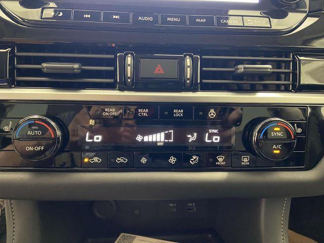 3rd row seats: bench, 4-Wheel Disc Brakes, 6 Speakers, ABS brakes, Air Conditioning, Alloy wheels, AM/FM radio: SiriusXM, Auto High-beam Headlights, Auto-dimming Rear-View mirror, Automatic temperature control, Bose Premium Audio System, Brake assist, Bumpers: body-color, Delay-off headlights, Driver door bin, Driver vanity mirror, Dual front impact airbags, Dual front side impact airbags, Electronic Stability Control, Emergency communication system, Exterior Parking Camera Rear, Four wheel independent suspension, Front anti-roll bar, Front Bucket Seats, Front Center Armrest, Front dual zone A/C, Front reading lights, Fully automatic headlights, Garage door transmitter: HomeLink, Heated door mirrors, Heated Front Bucket Seats, Heated front seats, Heated steering wheel, Illuminated entry, Knee airbag, Leather steering wheel, Leather-Appointed Seating Surfaces, Low tire pressure warning, Navigation system: NissanConnect with Navigation and Services, NissanConnect featuring Apple CarPlay and Android Auto, NissanConnect w/Navigation & Services, Occupant sensing airbag, Outside temperature display, Overhead airbag, Overhead console, Panic alarm, Passenger door bin, Passenger vanity mirror, Power door mirrors, Power driver seat, Power Liftgate, Power passenger seat, Power steering, Power windows, Radio data system, Radio: AM/FM Audio System, Rear air conditioning, Rear anti-roll bar, Rear reading lights, Rear seat center armrest, Rear side impact airbag, Rear window defroster, Rear window wiper, Reclining 3rd row seat, Remote keyless entry, Security system, Speed control, Speed-sensing steering, Split folding rear seat, Spoiler, Steering wheel mounted audio controls, Tachometer, Telescoping steering wheel, Tilt steering wheel, Traction control, Trip computer, Turn signal indicator mirrors, Variably intermittent wipers, Wheels: 18" x 8J Machined Alloy.