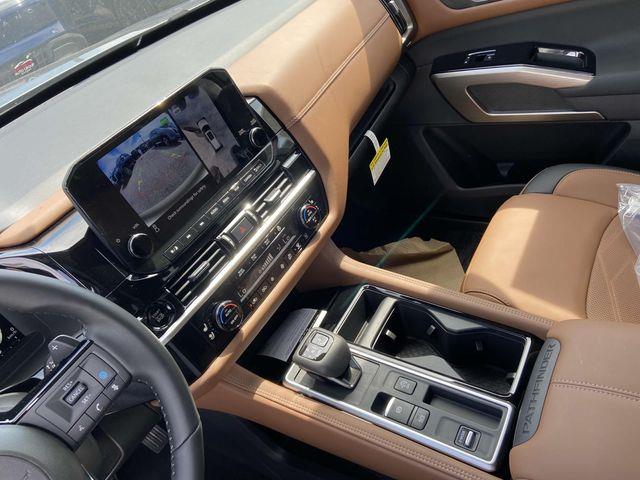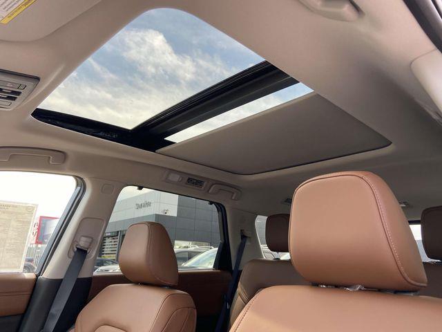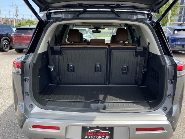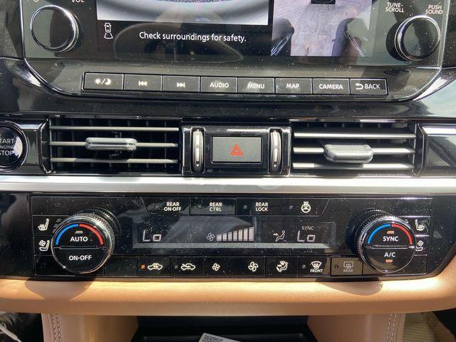 13 Speakers, 3rd row seats: bench, 4-Wheel Disc Brakes, ABS brakes, Air Conditioning, Alloy wheels, AM/FM radio: SiriusXM, Auto High-beam Headlights, Auto tilt-away steering wheel, Auto-dimming Rear-View mirror, Automatic temperature control, Bodyside moldings, Bose Premium Audio System, Brake assist, Bumpers: body-color, Climate Controlled Front Bucket Seats, Delay-off headlights, Driver door bin, Driver vanity mirror, Dual front impact airbags, Dual front side impact airbags, Electronic Stability Control, Emergency communication system, Exterior Parking Camera Rear, Four wheel independent suspension, Front anti-roll bar, Front Bucket Seats, Front Center Armrest, Front dual zone A/C, Front reading lights, Fully automatic headlights, Garage door transmitter: HomeLink, Heads-Up Display, Heated door mirrors, Heated front seats, Heated rear seats, Heated steering wheel, Illuminated entry, Knee airbag, Leather steering wheel, Low tire pressure warning, Memory seat, Navigation system: NissanConnect with Navigation and Services, NissanConnect featuring Apple CarPlay and Android Auto, NissanConnect w/Navigation & Services, Occupant sensing airbag, Outside temperature display, Overhead airbag, Overhead console, Panic alarm, Passenger door bin, Passenger vanity mirror, Power door mirrors, Power driver seat, Power Liftgate, Power moonroof, Power passenger seat, Power steering, Power windows, Radio data system, Radio: AM/FM Audio System, Rain sensing wipers, Rear air conditioning, Rear anti-roll bar, Rear reading lights, Rear seat center armrest, Rear side impact airbag, Rear window defroster, Rear window wiper, Reclining 3rd row seat, Remote keyless entry, Security system, Semi-Aniline Leather-Appointed Seating Surfaces, Speed control, Speed-sensing steering, Speed-Sensitive Wipers, Split folding rear seat, Spoiler, Steering wheel memory, Steering wheel mounted audio controls, Tachometer, Telescoping steering wheel, Tilt steering wheel, Traction control, Trip computer, Turn signal indicator mirrors, Variably intermittent wipers, Ventilated front seats, Wheels: 20" x 8J Machined Alloy.