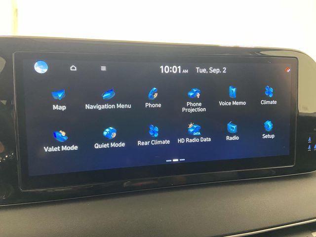 3.648 Axle Ratio, 3rd row seats: split-bench, 4-Wheel Disc Brakes, 6 Speakers, ABS brakes, Air Conditioning, Alloy wheels, AM/FM radio: SiriusXM, Apple CarPlay & Android Auto, Auto High-beam Headlights, Auto-dimming door mirrors, Auto-dimming Rear-View mirror, Auto-leveling suspension, Automatic temperature control, Brake assist, Bumpers: body-color, Delay-off headlights, Driver door bin, Driver vanity mirror, Dual front impact airbags, Dual front side impact airbags, Electronic Stability Control, Emergency communication system, Exterior Parking Camera Rear, Four wheel independent suspension, Front anti-roll bar, Front Bucket Seats, Front Center Armrest, Front dual zone A/C, Front reading lights, Fully automatic headlights, H-Tex Leatherette Seat Trim, Heated door mirrors, Heated Front Bucket Seats, Heated front seats, Illuminated entry, Knee airbag, Low tire pressure warning, Navigation System, Occupant sensing airbag, Option Group 01, Outside temperature display, Overhead airbag, Overhead console, Panic alarm, Passenger door bin, Passenger vanity mirror, Power door mirrors, Power driver seat, Power Liftgate, Power moonroof, Power passenger seat, Power steering, Power windows, Radio data system, Radio: AM/FM/MP3 Audio System, Rear air conditioning, Rear anti-roll bar, Rear audio controls, Rear reading lights, Rear side impact airbag, Rear window defroster, Rear window wiper, Reclining 3rd row seat, Remote keyless entry, Roof rack, Security system, Speed control, Speed-sensing steering, Split folding rear seat, Spoiler, Steering wheel mounted audio controls, Tachometer, Telescoping steering wheel, Tilt steering wheel, Traction control, Trip computer, Turn signal indicator mirrors, Variably intermittent wipers, Wheels: 20" x 7.5J Dark Alloy w/Rugged Styling. Hyper White 2024 Hyundai Palisade XRT 8-Speed Automatic with SHIFTRONIC V6 AWD