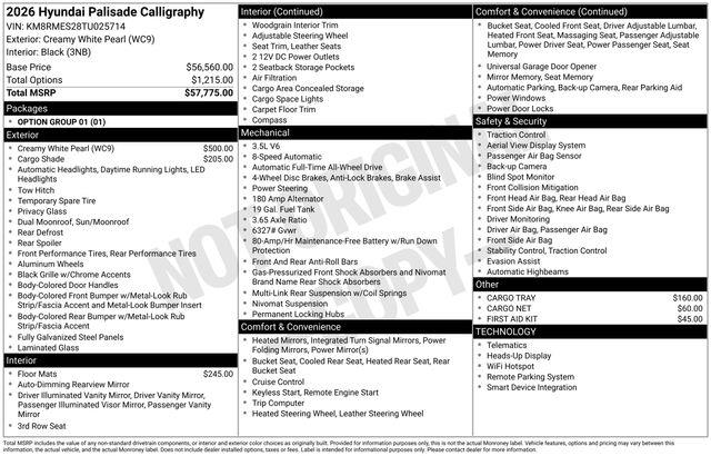 Creamy White Pearl 2026 Hyundai Palisade Calligraphy AWD 8-Speed Automatic V6