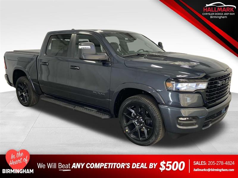 10 Speakers, 14.4" Touchscreen Display, 4-Wheel Disc Brakes, 4G LTE Wi-Fi Hot Spot, ABS brakes, Accent Color Door Handles, Accent Color Premium Power Mirrors, Accent Color Tailgate Handle, Active Noise Control System, Air Conditioning, Alloy wheels, AM/FM radio: SiriusXM with 360L, Anti-Spin Differential Rear Axle, Apple CarPlay, Apple CarPlay/Android Auto, Audio memory, Auto High-beam Headlights, Auto Power-Folding Mirrors, Auto-dimming door mirrors, Auto-Dimming Exterior Driver Mirror, Auto-Dimming Exterior Passenger Mirror, Auto-dimming Rear-View mirror, Automatic temperature control, Bed Utility Group, Black Exterior Mirrors, Black Exterior Truck Badging, Black Headlamp Bezels, Black Interior Accents, Black Painted Exterior Mirrors Caps, Black Power-Fold Trailer Tow Mirrors, Black Tail Lamp Bezels, Body Color Front Bumper, Body Color Rear Bumper w/Step Pads, Brake assist, Bumpers: chrome, Chrome Exterior Mirrors, Cluster 12" TFT Color Display, Compass, Connected Travel & Traffic Services, Connectivity - US/Canada, Convex Wide-Angle Exterior Mirror Insert, Delay-off headlights, Disassociated Touchscreen Display, Dome Dual LED Reading Lamp, Driver door bin, Driver vanity mirror, Dual Exhaust w/Black Tips, Dual front impact airbags, Dual front side impact airbags, Dual Wireless Charging Pad, Dual-Pane Panoramic Sunroof, Electronic Stability Control, Exterior 115V AC Outlet, Exterior Mirrors Approach Lamps, Exterior Mirrors Courtesy Lamps, Exterior Mirrors w/Heating Element, Exterior Mirrors w/Memory, Exterior Mirrors w/Supplemental Signals, Forward & Reverse Utility Lights, Front anti-roll bar, Front Bucket Seats, Front Center Armrest w/Storage, Front dual zone A/C, Front fog lights, Front License Plate Bracket, Front Passenger Interactive Display, Front reading lights, Front wheel independent suspension, Fully automatic headlights, Garage door transmitter, Global Telematics Box Module (TBM), Google Android Auto, GPS Antenna Input, GPS Navigation, Grille Surround 3 Black Texture 2 Black, harman/kardon 19 Speaker Premium Sound, HD Radio, Heated door mirrors, Heated front seats, Heated rear seats, Heated steering wheel, Illuminated entry, Integrated Center Stack Radio, Integrated Voice Command w/Bluetooth, Laramie Level 2 Equipment Group, Leather steering wheel, Leather Trimmed Bucket Seats, LED Dome/Reading Lamp, Low tire pressure warning, Memory seat, Mirror Clearance/Running Lights, MOPAR 4 Adjustable Cargo Tie-Down Hooks, Mopar Black Tubular Side Steps, MOPAR Spray In Bedliner, Multi-Function Tailgate, Navigation System, Night Edition, Occupant sensing airbag, Off-Road Information Pages, Outside temperature display, Overhead airbag, Overhead console, Panic alarm, ParkView Rear Back-Up Camera, Passenger door bin, Passenger vanity mirror, Pirelli Brand Tires, Power door mirrors, Power driver seat, Power passenger seat, Power steering, Power Tailgate, Power Telescoping Mirrors, Power windows, Power-Adjustable Convex Aux Mirrors, Proximity Approach/Departure Lamps, Quick Order Package 21H Laramie, Radio data system, Radio: Uconnect 5 Nav w/12.0" Display, Radio: Uconnect 5 Nav w/14.4" Display, Rain Sensitive Windshield Wipers, RAM Grille Badge - Black, RAM Grille Badge - Chrome, RAM's Head Badge, RamBox Cargo Management System, Rear anti-roll bar, Rear reading lights, Rear seat center armrest, Rear step bumper, Remote keyless entry, Secondary Active Grille Shutters, Security system, SiriusXM Radio Service, SiriusXM w/360L, Smartphone As A Key Capable, Speed control, Split folding rear seat, Sport Performance Hood, Steering wheel mounted audio controls, Tachometer, Telescopi Price includes: $1000 - 2026 South BC Retail Bonus Cash . Exp. 11/03/2025 $2000 - 2026 National SFS Lease Loyalty Bonus Cash . Exp. 11/03/2025 $3500 - 2026 National Retail Consumer Cash . Exp. 11/03/2025 $500 - 2026 National 2026 First Responder Bonus Cash . Exp. 01/05/2026 $500 - 2026 National 2026 Military Bonus Cash . Exp. 01/05/2