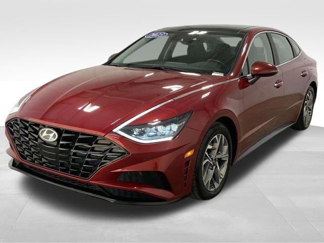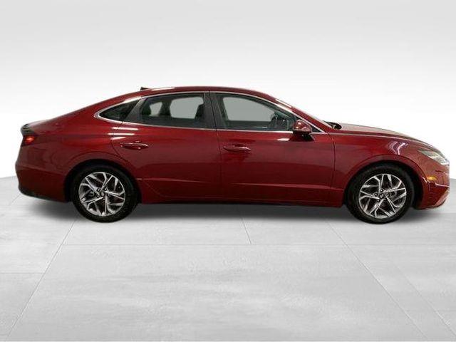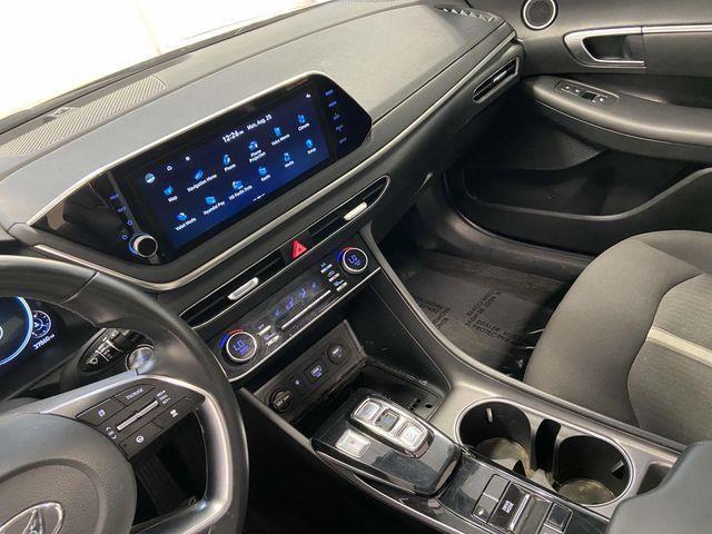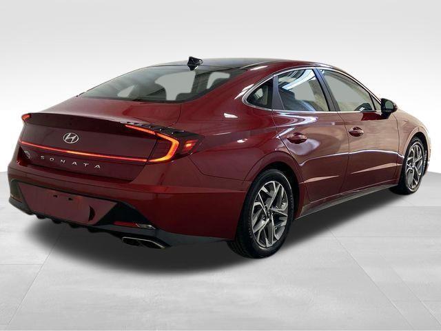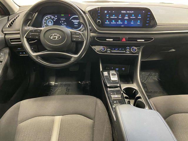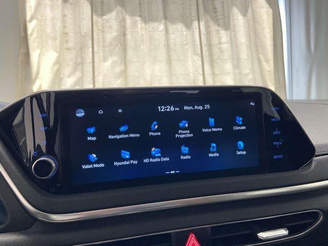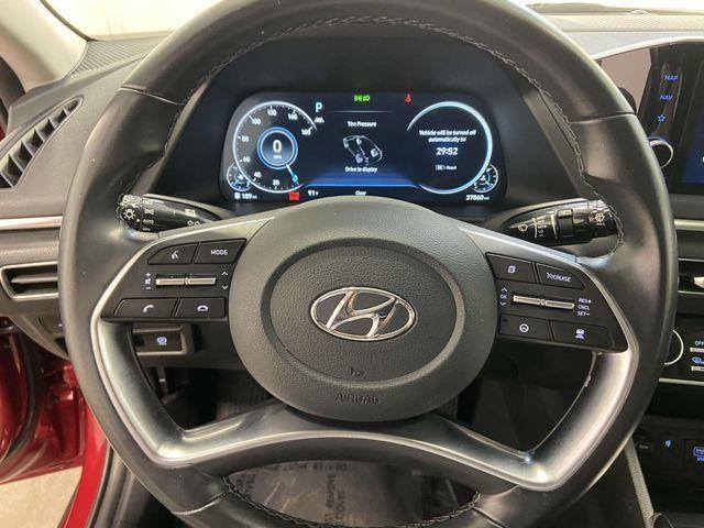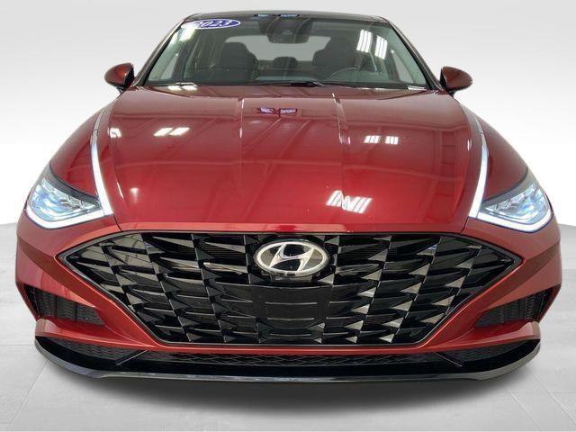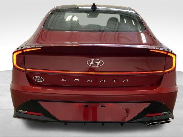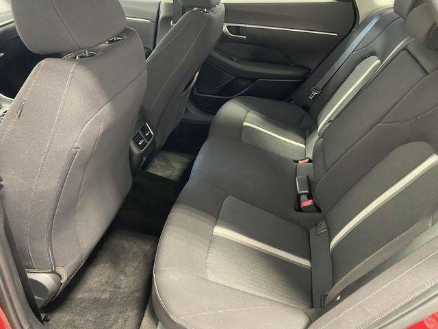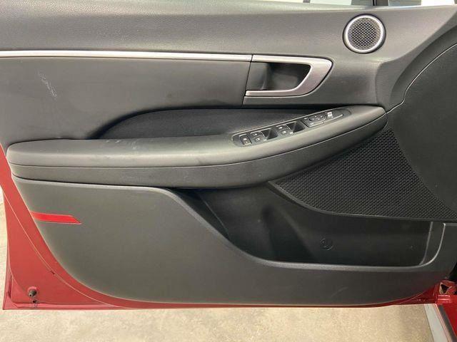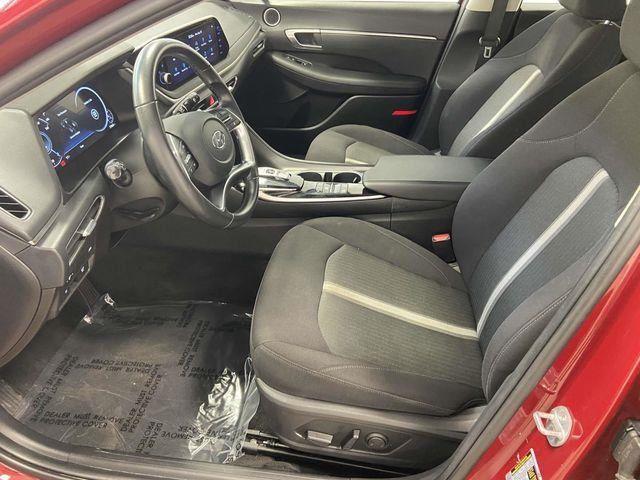 Black Cloth, 12.3" LCD Instrument Cluster, 17" x 7.0J Aluminum Alloy Wheels, 2nd Row Air Vent, 2nd Row USB Charge Port, 4-Wheel Disc Brakes, 6 Speakers, ABS brakes, Air Conditioning, Alloy wheels, AM/FM radio: SiriusXM, Apple CarPlay & Android Auto, Auto High-beam Headlights, Auto-Dimming Rear-View Mirror, Automatic temperature control, Brake assist, Bumpers: body-color, Cargo Block, Cargo Side Bins, Cargo Tray, Carpeted Floor Mats, Convenience Package, Delay-off headlights, Driver door bin, Driver vanity mirror, Dual front impact airbags, Dual front side impact airbags, Electronic Stability Control, Emergency communication system: Blue Link Connected Car Service (3-year complimentary subscription), Exterior Parking Camera Rear, First Aid Kit, Four wheel independent suspension, Front anti-roll bar, Front Bucket Seats, Front Center Armrest, Front dual zone A/C, Front reading lights, Fully automatic headlights, Heated door mirrors, Heated Front Bucket Seats, Heated front seats, Hyundai Digital Key, Illuminated entry, Knee airbag, Leather-Wrapped Steering Wheel, LED Interior Lights, Low tire pressure warning, Navigation System, Occupant sensing airbag, Option Group 02, Outside temperature display, Overhead airbag, Overhead console, Panic alarm, Panoramic Sunroof, Passenger door bin, Passenger vanity mirror, Power door mirrors, Power driver seat, Power steering, Power windows, Preferred Accessory Package, Premium Cloth Seating Surfaces, Radio data system, Radio: AM/FM/MP3/HD/SiriusXM Display Audio w/Nav, Rear anti-roll bar, Rear Bumper Applique, Rear seat center armrest, Rear side impact airbag, Rear window defroster, Remote keyless entry, Security system, Speed control, Speed-sensing steering, Speed-Sensitive Wipers, Split folding rear seat, Steering wheel mounted audio controls, Tachometer, Telescoping steering wheel, Tilt steering wheel, Traction control, Trip computer, Turn signal indicator mirrors, Variably intermittent wipers, Wheel Locks, Wireless Device Charging, Black Cloth. Ultimate Red 2023 Hyundai Sonata SEL 8-Speed Automatic with SHIFTRONIC 2.5L I4 FWD