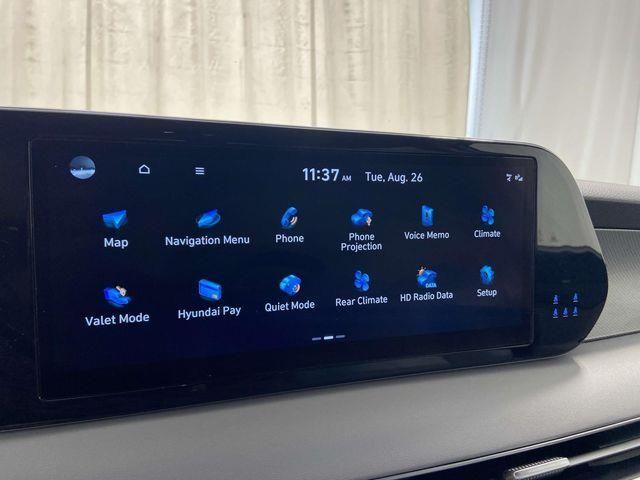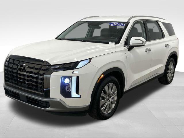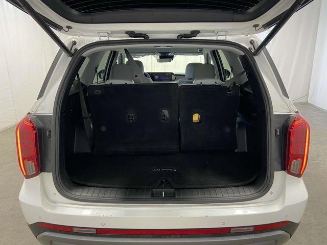 3.510 Axle Ratio, 3rd row seats: split-bench, 4-Wheel Disc Brakes, 6 Speakers, ABS brakes, Air Conditioning, Alloy wheels, AM/FM radio: SiriusXM, Apple CarPlay & Android Auto, Auto High-beam Headlights, Auto-dimming door mirrors, Auto-dimming Rear-View mirror, Automatic temperature control, Brake assist, Bumpers: body-color, Cargo Blocks, Cargo Cover/Screen, Cargo Net, Cargo Package, Cargo Tray, Carpeted Floor Mats, Delay-off headlights, Driver door bin, Driver vanity mirror, Dual front impact airbags, Dual front side impact airbags, Electronic Stability Control, Emergency communication system: Blue Link Connected Car Service (3-year complimentary subscription), Exterior Parking Camera Rear, First Aid Kit, Four wheel independent suspension, Front anti-roll bar, Front Bucket Seats, Front Center Armrest, Front dual zone A/C, Front reading lights, Fully automatic headlights, Garage door transmitter: HomeLink, H-Tex Leatherette Seat Trim, Heated door mirrors, Heated Front Bucket Seats, Heated front seats, Illuminated entry, Knee airbag, Low tire pressure warning, Navigation System, Occupant sensing airbag, Option Group 01, Outside temperature display, Overhead airbag, Overhead console, Panic alarm, Passenger door bin, Passenger vanity mirror, Power door mirrors, Power driver seat, Power Liftgate, Power passenger seat, Power steering, Power windows, Radio data system, Radio: AM/FM/MP3 Audio System, Rear air conditioning, Rear anti-roll bar, Rear audio controls, Rear reading lights, Rear side impact airbag, Rear window defroster, Rear window wiper, Reclining 3rd row seat, Remote keyless entry, Security system, Speed control, Speed-sensing steering, Splash Trim, Split folding rear seat, Spoiler, Steering wheel mounted audio controls, Tachometer, Telescoping steering wheel, Tilt steering wheel, Traction control, Trip computer, Turn signal indicator mirrors, Variably intermittent wipers, Wheels: 18" x 7.5J Machine-Faced Alloy. Hyper White 2023 Hyundai Palisade SEL 8-Speed Automatic with SHIFTRONIC V6 FWD