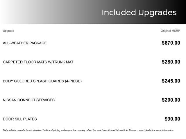 CVT with Xtronic, Charcoal Cloth, 16" Alloy Wheels, 4-Wheel Disc Brakes, 8 Speakers, ABS brakes, Air Conditioning, Alloy wheels, AM/FM radio: SiriusXM, Auto High-beam Headlights, Blind Spot Warning, Brake assist, Bumpers: body-color, Delay-off headlights, Driver door bin, Driver vanity mirror, Dual front impact airbags, Dual front side impact airbags, Electronic Stability Control, Four wheel independent suspension, Front anti-roll bar, Front Bucket Seats, Front Center Armrest, Front reading lights, Fully automatic headlights, Illuminated entry, Knee airbag, Low tire pressure warning, NissanConnect featuring Apple CarPlay and Android Auto, Occupant sensing airbag, Outside temperature display, Overhead airbag, Overhead console, Panic alarm, Passenger door bin, Passenger vanity mirror, Power door mirrors, Power steering, Power windows, Radio data system, Radio: AM/FM w/RDS/MP3/Aux-In, Rear anti-roll bar, Rear Parking Sensors, Rear side impact airbag, Rear window defroster, Remote keyless entry, Security system, Speed control, Speed-sensing steering, Split folding rear seat, Steering wheel mounted audio controls, Tachometer, Telescoping steering wheel, Tilt steering wheel, Traction control, Trip computer, Upgraded Cloth Seat Trim, Variably intermittent wipers, CVT with Xtronic, Charcoal Cloth.