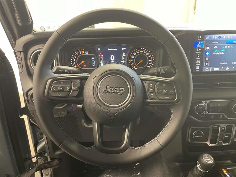 110 MPH Vehicle Max Speed Calibration, 12.3" Touchscreen Display, 3.73 Rear Axle Ratio, 4-Wheel Disc Brakes, 4G LTE Wi-Fi Hot Spot, 8 Speakers, 97 MPH Vehicle Max Speed Calibration, ABS brakes, Advanced Brake Assist, Air Conditioning, Alexa Built-In, AM/FM radio: SiriusXM, Apple CarPlay, Apple CarPlay/Android Auto, Automatic Headlamps, Body Color 3-Piece Hard Top, Body Color Fender Flares (2-Piece), Brake assist, Cloth Low-Back Bucket Seats, Compass, Connectivity - US/Canada, Convenience Group, Corning Gorilla Glass, Daytime Running Lamp System, Deep Tint Sunscreen Windows, Delay-off headlights, Driver door bin, Driver vanity mirror, Dual front impact airbags, Dual front side impact airbags, Electronic Stability Control, Emergency/Assistance Call, Freedom Panel Storage Bag, Front anti-roll bar, Front Bucket Seats, Front Center Armrest w/Storage, Front Door Locks 2-Door Passive Entry, Front fog lights, Front reading lights, Full Length Floor Console Premium Armrest, Full Speed Forward Collision Warning Plus, Google Android Auto, Hard Seat Back, Heated Front Seats, Heated Steering Wheel, High Tide, High Tide Tailgate & Hood Decals, Illuminated entry, Integrated Radar Camera Module (IRCM), Integrated roll-over protection, Leather Wrapped Park Brake Handle, Leather Wrapped Shift Knob, Low tire pressure warning, MOPAR All-Weather Slush Mats, Normal Duty Suspension, Occupant sensing airbag, Outside temperature display, Overhead airbag, Panic alarm, ParkView Rear Back-Up Camera, Passenger door bin, Passenger vanity mirror, Power 4-Way Driver Lumbar Adjust, Power 4-Way Passenger Lumbar Adjust, Power Adjust 8-Way Driver Seat, Power Adjust 8-Way Front Passenger Seat, Power Heated Mirrors, Power steering, Power windows, Premium Door Trim Panel, Premium McKinley Trimmed Seats, Premium Wrapped Steering Wheel, Quick Order Package 24Q High Tide, Radio data system, Radio: Uconnect 5 w/12.3" Display, Rear anti-roll bar, Rear Armrest w/Cupholder Seat, Rear reading lights, Rear Sliding Window, Rear Window Defroster, Remote keyless entry, Remote Start System, Security Alarm, Side Steps, Speed control, Split folding rear seat, Steering wheel mounted audio controls, Sun Visors w/Illuminated Vanity Mirrors, Tachometer, Telescoping steering wheel, Tilt steering wheel, Traction control, Trip computer, Universal Garage Door Opener, USB Host Flip, Variably intermittent wipers, Voltmeter, Wheels: 17" x 7.5" Black Steel Styled, Wheels: 17" x 7.5" Painted Black, Willys Suspension.