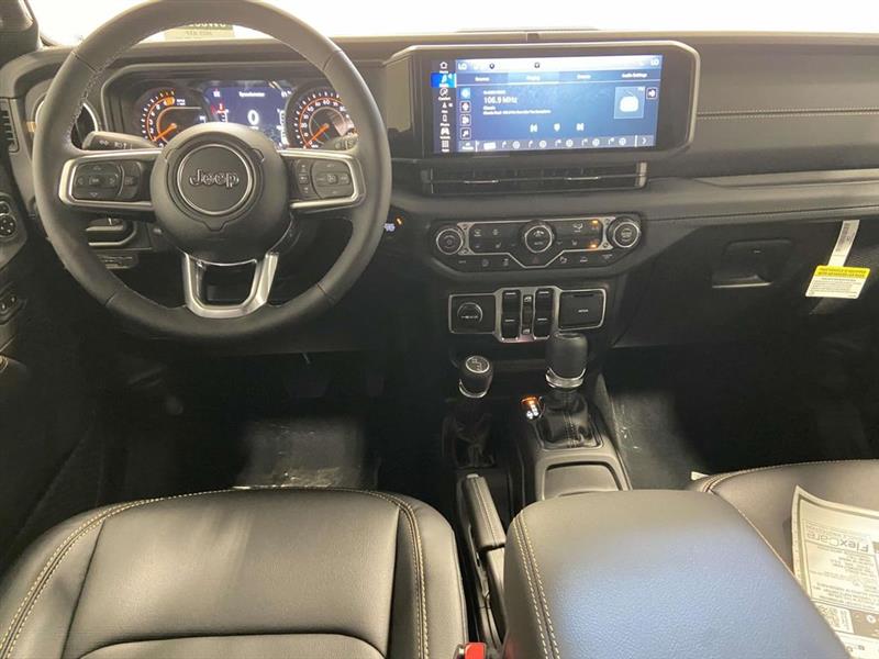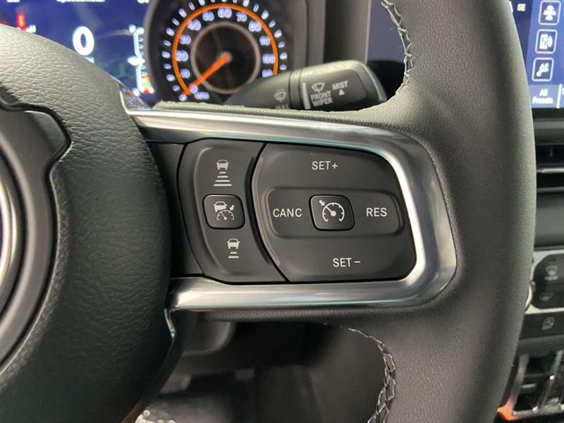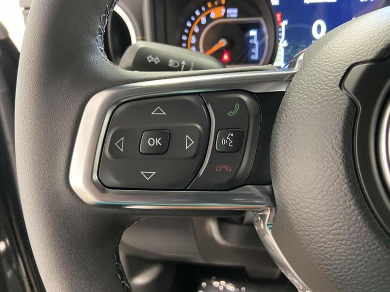 #1 Seat Foam Cushion, 110 MPH Vehicle Max Speed Calibration, 12.3" Touchscreen Display, 3.45 Overall Top Gear Ratio, 4-Wheel Disc Brakes, 4G LTE Wi-Fi Hot Spot, 8 Speakers, ABS brakes, Air Conditioning, Alloy wheels, Alpine Premium Audio System, AM/FM radio: SiriusXM, Apple CarPlay, Apple CarPlay/Android Auto, Auto High Beam Headlamp Control, Auto-Dimming Rear-View Mirror, Automatic temperature control, Aux Battery, Blind Spot & Cross Path Detection, Brake assist, Cloth Low-Back Bucket Seats, Compass, Connected Travel & Traffic Services, Connectivity - US/Canada, Delay-off headlights, Disassociated Touchscreen Display, Driver door bin, Driver vanity mirror, Dual front impact airbags, Dual front side impact airbags, Electronic Stability Control, Emergency communication system: Jeep Connect, For More Info, Call 800-643-2112, Front anti-roll bar, Front Bucket Seats, Front Center Armrest w/Storage, Front dual zone A/C, Front fog lights, Front License Plate Bracket (DISC), Front reading lights, Fully automatic headlights, Google Android Auto, GPS Navigation, Hard Seat Back, HD Radio, Heated door mirrors, Heated front seats, Heated steering wheel, Heavy Duty Suspension w/Gas Shocks, Illuminated entry, Integrated Center Stack Radio, Integrated Off-Road Camera, Integrated roll-over protection, Integrated Voice Command w/Bluetooth, Leather Wrapped Park Brake Handle, Leather Wrapped Shift Knob, Low tire pressure warning, McKinley Trimmed Seats, MOPAR All-Weather Floor Mats, Non-Lock Fuel Cap w/o Discriminator, Occupant sensing airbag, Outside temperature display, Overhead airbag, Panic alarm, ParkSense Rear Park Assist System, ParkView Rear Back-Up Camera, Passenger door bin, Passenger vanity mirror, Power 4-Way Driver Lumbar Adjust, Power 4-Way Passenger Lumbar Adjust, Power Adjust 8-Way Driver Seat, Power Adjust 8-Way Front Passenger Seat, Power door mirrors, Power steering, Power windows, Quick Order Package 22G Sahara, Radio data system, Radio: Uconnect 5 Nav w/12.3" Display, Radio: Uconnect 5 w/12.3" Display, Rear anti-roll bar, Rear reading lights, Remote keyless entry, Sahara Popular Equipment Group, Security system, Side Steps, SiriusXM Radio Service, SiriusXM w/360L, Speed control, Split folding rear seat, Steering wheel mounted audio controls, Stop-Start Dual Battery System, Tachometer, Telescoping steering wheel, Tilt steering wheel, Traction control, Trip computer, Universal Garage Door Opener, Variably intermittent wipers, Voltmeter, Wheels: 18" x 7.5" Machine/Painted Gray.