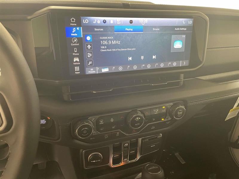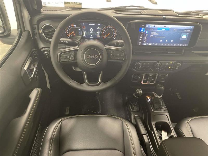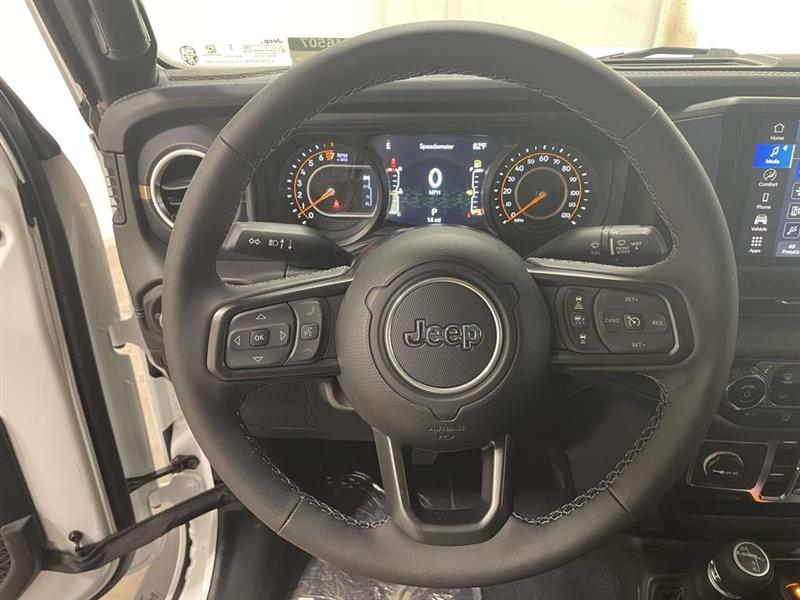 110 MPH Vehicle Max Speed Calibration, 12.3" Touchscreen Display, 3.73 Rear Axle Ratio, 4-Wheel Disc Brakes, 4G LTE Wi-Fi Hot Spot, 8 Speakers, 97 MPH Vehicle Max Speed Calibration, ABS brakes, Advanced Brake Assist, Air Conditioning, Alexa Built-In, AM/FM radio: SiriusXM, Apple CarPlay, Apple CarPlay/Android Auto, Automatic Headlamps, Body Color 3-Piece Hard Top, Body Color Fender Flares (2-Piece), Brake assist, Cloth Low-Back Bucket Seats, Compass, Connectivity - US/Canada, Convenience Group, Corning Gorilla Glass, Daytime Running Lamp System, Deep Tint Sunscreen Windows, Delay-off headlights, Driver door bin, Driver vanity mirror, Dual front impact airbags, Dual front side impact airbags, Electronic Stability Control, Emergency/Assistance Call, Freedom Panel Storage Bag, Front anti-roll bar, Front Bucket Seats, Front Center Armrest w/Storage, Front Door Locks 2-Door Passive Entry, Front fog lights, Front reading lights, Full Length Floor Console Premium Armrest, Full Speed Forward Collision Warning Plus, Google Android Auto, Hard Seat Back, Heated Front Seats, Heated Steering Wheel, High Tide, High Tide Tailgate & Hood Decals, Illuminated entry, Integrated Radar Camera Module (IRCM), Integrated roll-over protection, Leather Wrapped Park Brake Handle, Leather Wrapped Shift Knob, Low tire pressure warning, MOPAR All-Weather Slush Mats, MOPAR Hard Tri-Fold Tonneau Cover, MOPAR Spray In Bedliner, Normal Duty Suspension, Occupant sensing airbag, Outside temperature display, Overhead airbag, Panic alarm, ParkView Rear Back-Up Camera, Passenger door bin, Passenger vanity mirror, Power 4-Way Driver Lumbar Adjust, Power 4-Way Passenger Lumbar Adjust, Power Adjust 8-Way Driver Seat, Power Adjust 8-Way Front Passenger Seat, Power Heated Mirrors, Power steering, Power windows, Premium Door Trim Panel, Premium McKinley Trimmed Seats, Premium Wrapped Steering Wheel, Quick Order Package 24Q High Tide, Radio data system, Radio: Uconnect 5 w/12.3" Display, Rear anti-roll bar, Rear Armrest w/Cupholder Seat, Rear reading lights, Rear Sliding Window, Rear Window Defroster, Remote keyless entry, Remote Start System, Security Alarm, Side Steps, Speed control, Split folding rear seat, Steering wheel mounted audio controls, Sun Visors w/Illuminated Vanity Mirrors, Tachometer, Telescoping steering wheel, Tilt steering wheel, Traction control, Trip computer, Universal Garage Door Opener, USB Host Flip, Variably intermittent wipers, Voltmeter, Wheels: 17" x 7.5" Black Steel Styled, Wheels: 17" x 7.5" Painted Black, Willys Suspension.